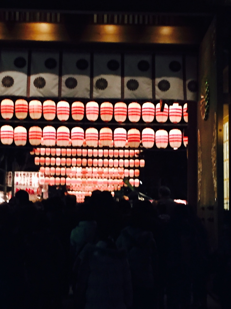 ライトアップされた境内に流れるお囃子、参道の提灯…