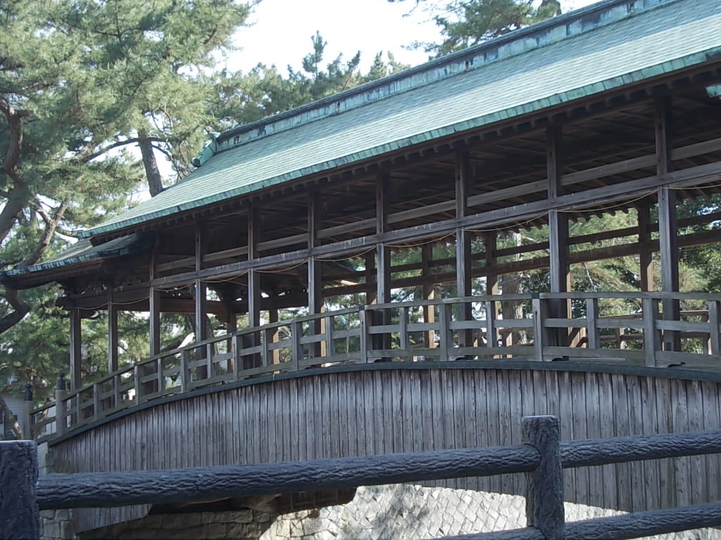 屋根つきの橋で、その名の通り、刀の鞘のような形をしています。