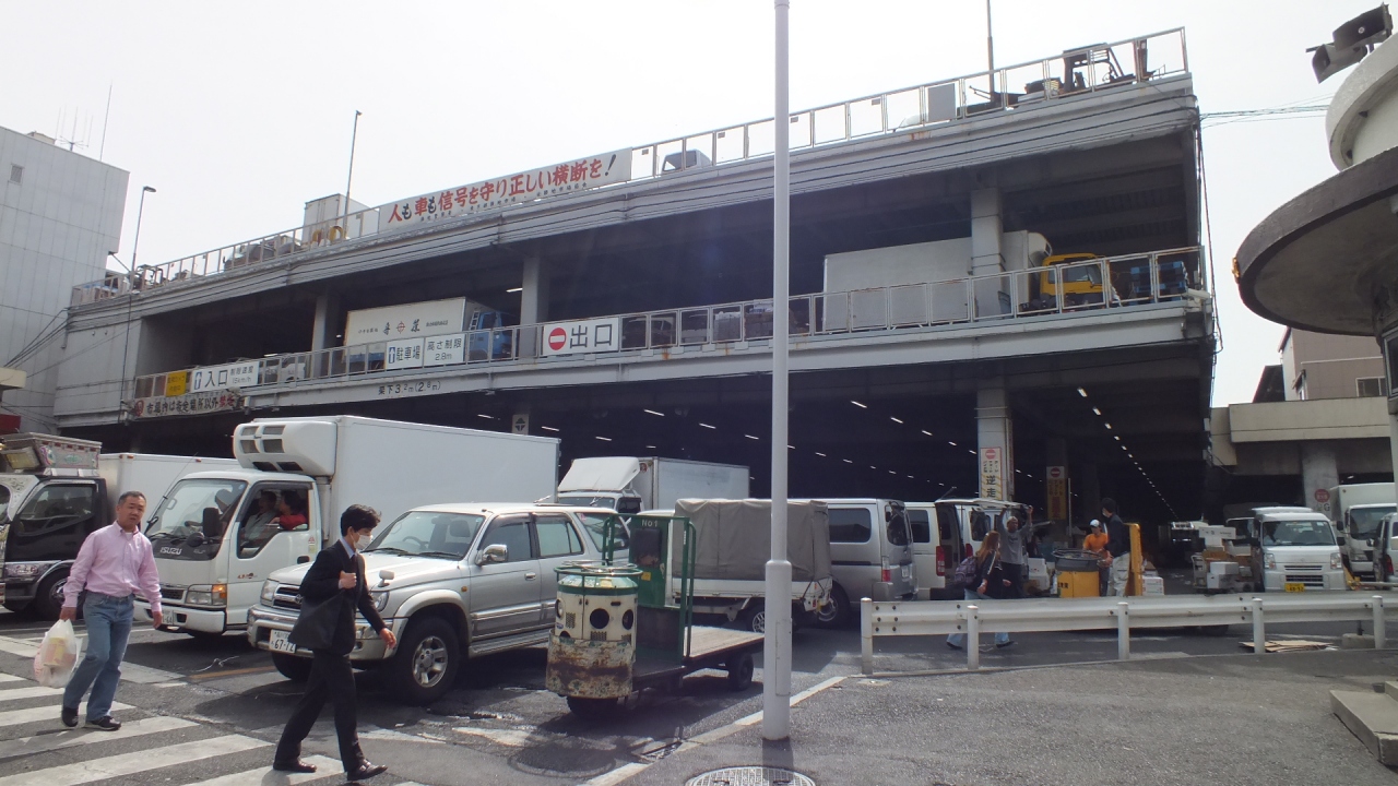 都営大江戸線築地市場駅A1番出口からすぐである。道路の反対側は朝日新聞社、斜向かいは国立がんセンターである。場外市場とちがい、ここはプロの皆さんの戦場なので、あくまでも邪魔しないように行動すべきである。ターレが縦横無尽に走り回っている。交番には鮮魚の落し物が届く。