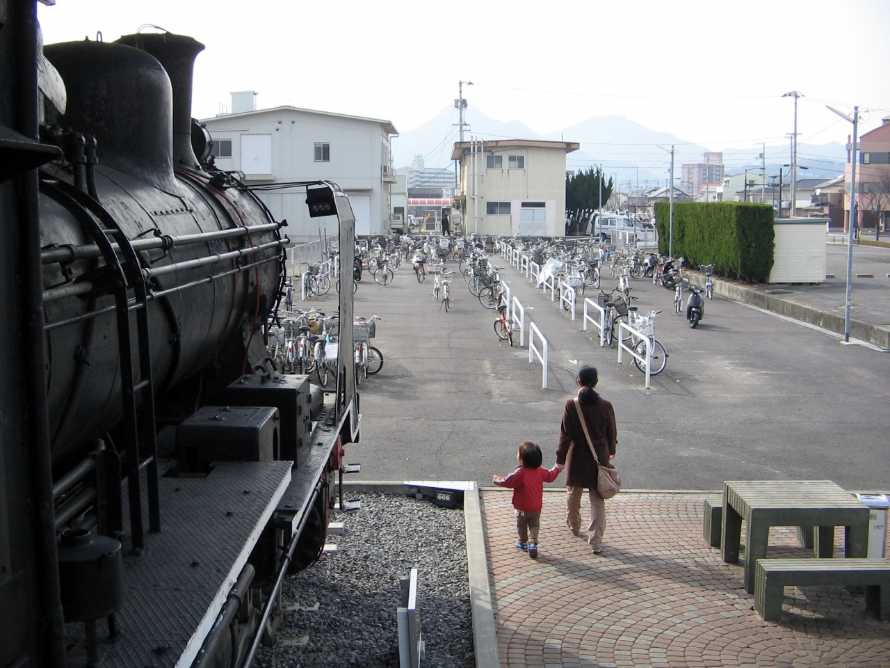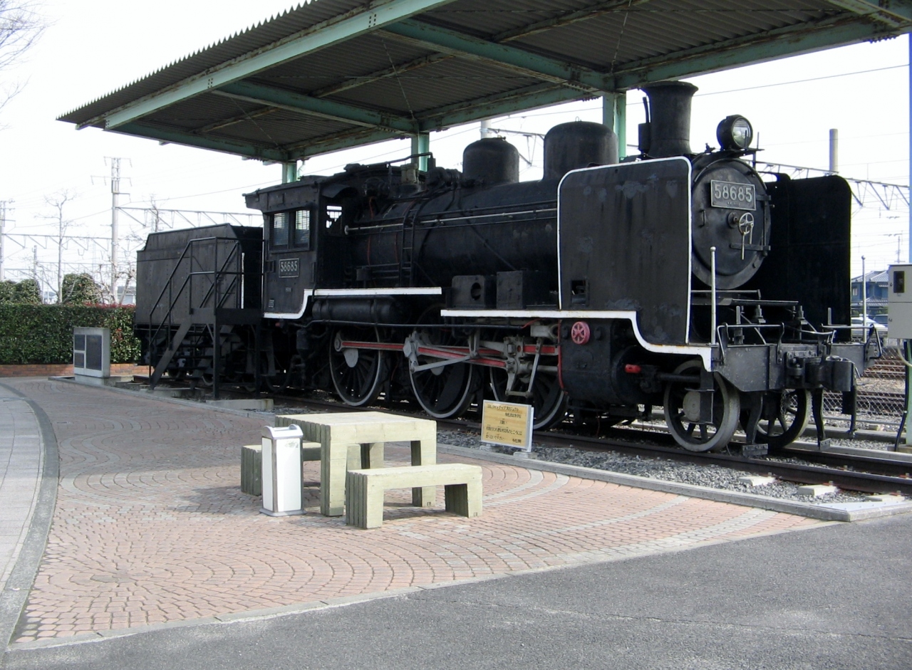 駅舎を正面に向かって左側を見るとSLの碑はすぐ目撃できます。10メートルほどに線路沿いに向かった所にSLが展示されています。側で見るとさすがその重厚な機関車の容姿に圧倒されました。SLの運転席に立ち入ることもできるので鉄道マニアには涙ものでしょう。