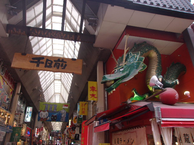 金龍ラーメンはこのエリアに数店舗のお店があり、普通の600円のラーメンとチャーシュー入りの900円のラーメンの二種のメニューしかありませんが、ライスやキムチ、ニラ、にんにくなどの盛り放題(セルフ)サービスがあって、特にがっつり食べたい男性客に人気がある印象のお店でした。こちらの店舗に関しては、道頓堀エリアの一番観光客で賑わっているエリアに店舗があって、丁度千日前アーケードの入口に例の龍の姿が見られますので、立地的にも判りやすいと思います。ただ、利便性から昼時の混雑は尋常でなく、客席もあまり広くありませんので、個人的にはもう少し東寄りにある店舗の方がゆっくりできてお勧めかなと思います。