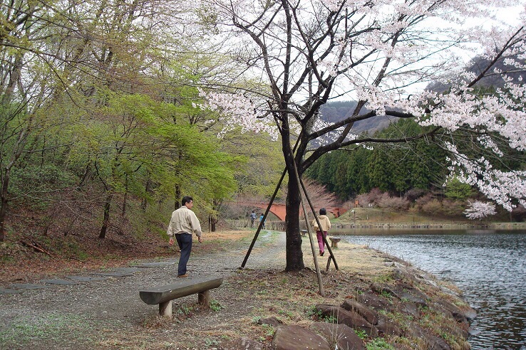 すがすがしい空気の中、湖の周りをぐるりと散歩すると、車の運転の疲れが取れます。