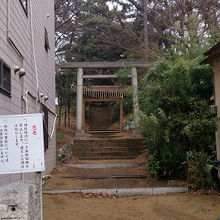 JRと東京メトロの西船橋駅から京成西船駅へのルート上にひっそりと建っています。正面入り口が国道14号線に面しており、そこから鳥居をくぐり階段を上っていくと社殿があります。この神社のあるところだけ木々が豊かにあります。決して大きな神社ではありません。