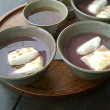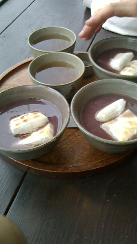 ぜんざいは、 ちょっと焦げ目がついた小さ目のおもちが