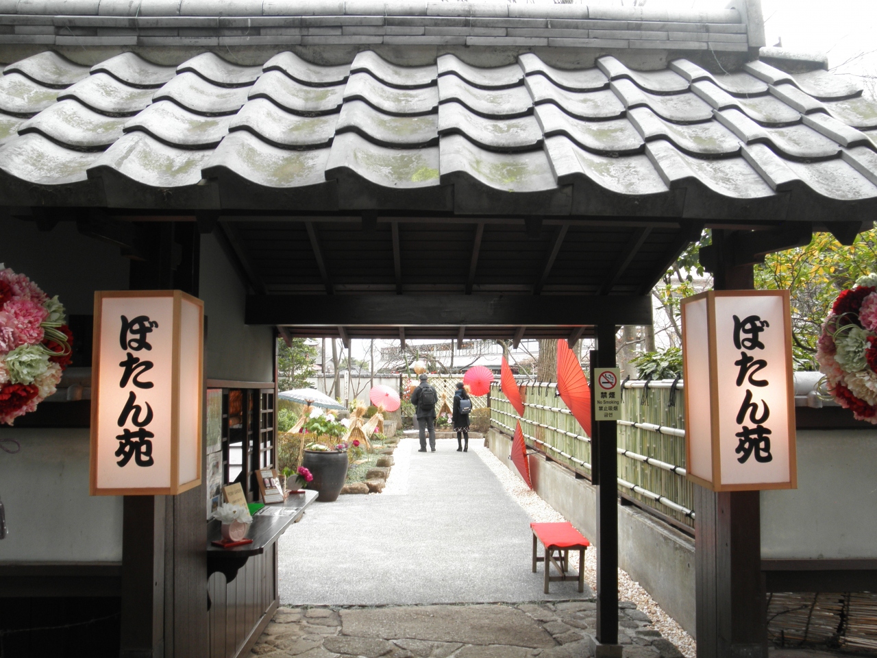 前回初めて上野東照宮に行ったときはリニューアル中で中を見れませんでした。今回は冬ぼたんをやっているというので再度行きました。中は日本傘や赤い敷物をひいた長椅子が置かれ、ぼたんと共に日本情緒あふれる展示になっていて満足しました。