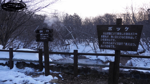 ボッケは北海道釧路市阿寒町にある自然観察ポイント。阿寒湖温泉内の阿寒湖自然遊歩道沿いに位置しており、音を立てながら泥から吹き上げるお湯を柵外から鑑賞することができる。湖が中心の阿寒湖温泉のもう一つの顔を知ることができる。