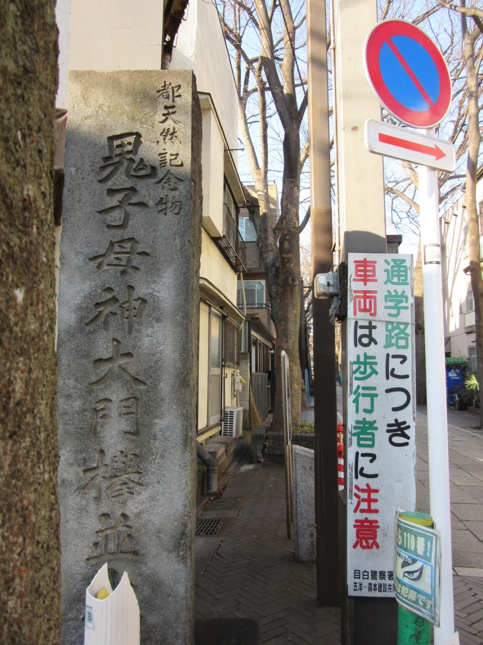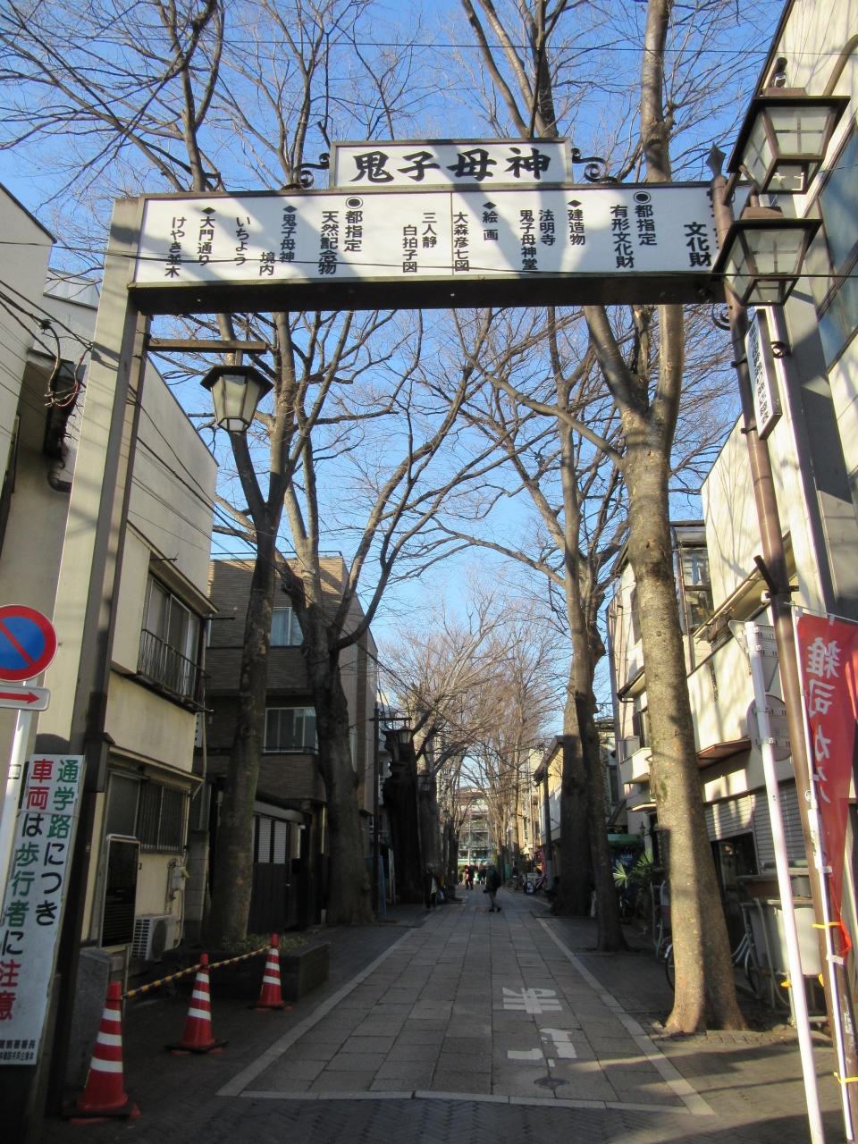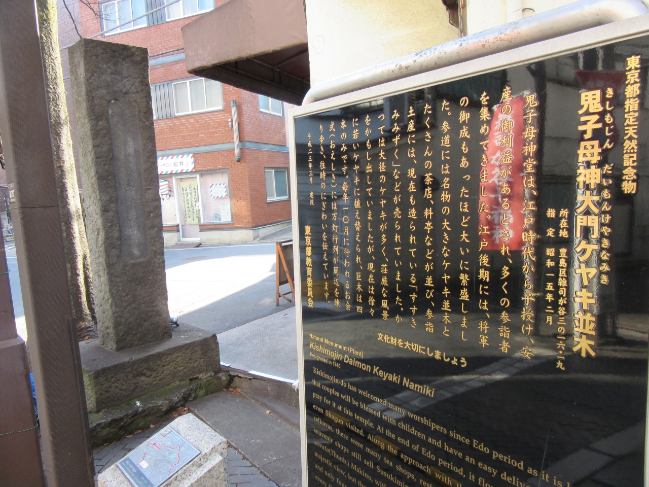 けやき並木の名の通り、古い太い欅とともに鬼子母神の参道を形成しています。古い飲食店風のお店あれば最近建て替えしたような建物が混在していますが、古き良き時代を彷彿させる息吹があります。