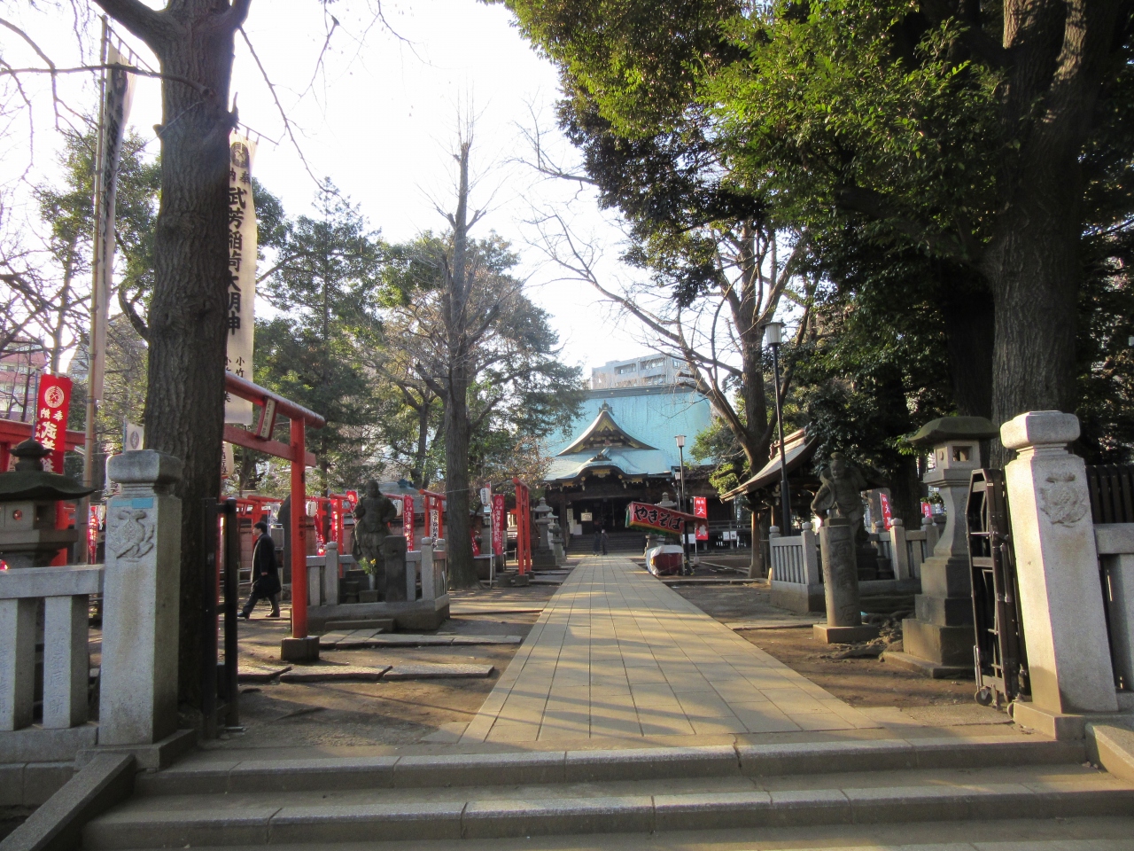 またここ、雑司が谷七福神の大黒天が祀られていますので七福神めぐりの巡拝者も訪れます。境内には、樹齢およそ700年とも高さ30メートル超のイチョウの木(都天然記念物)、境内社(稲荷)、法不動堂、鬼子母神石造、石塔石碑、駄菓子屋さん団子出店など多彩。
