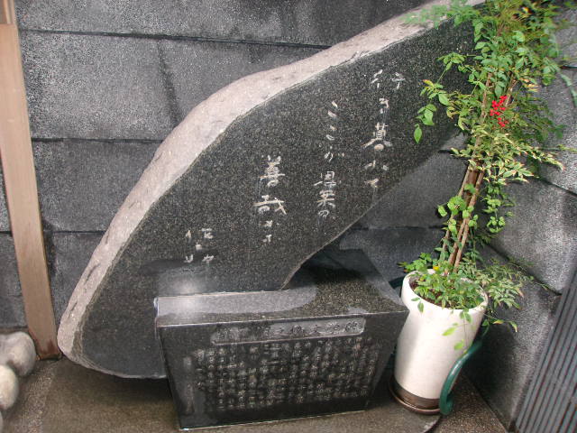 法善寺横丁の一角にある小さな歌碑ですが、お店の前に小さく佇んでいる感じですので、注意して歩かないと見逃してしまう恐れがあります。場所もちょっと判り辛い上、台座部分の解説も読みにくいのが難点です。尚、夫婦善哉の解説に関しては、法善寺の水掛不動の脇にあるお店の解説板の方が懇切丁寧で読みやすかったです。