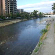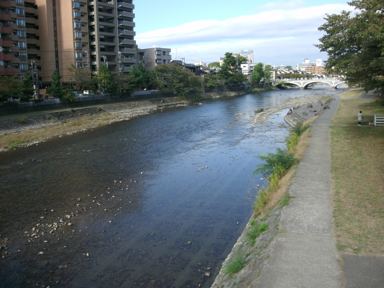 河岸にはマンションが建ち並ぶところもあり、全ての風景が金沢らしい落ち着いた風景とはいえませんが、浅野川は別名、“女川”と呼ばれるように優しい雰囲気の綺麗な川で、こんな川が大都会の中を流れているのをうらやましく思いました。