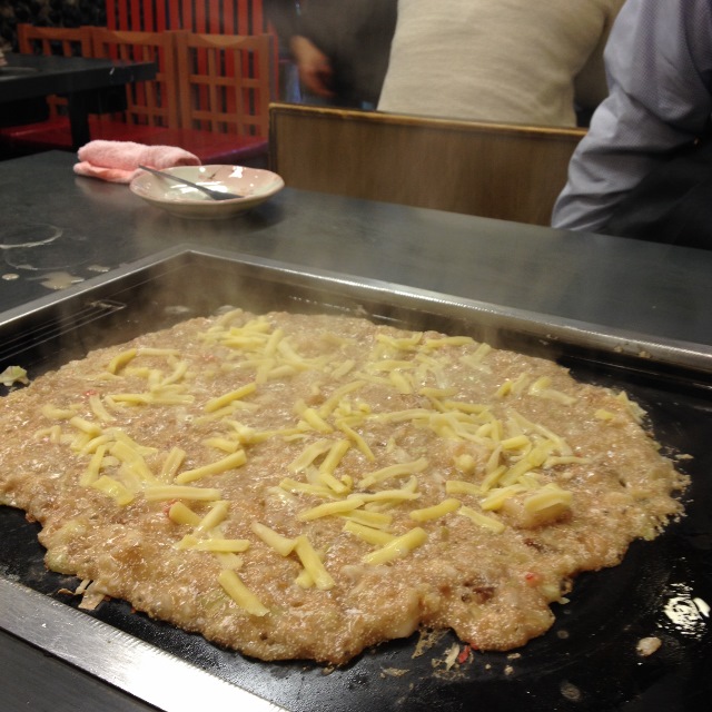 月島の通り、少し奥にあるので比較的すいていました。店内はたくさんの色紙。明太もちチーズもんじゃが一番人気とのこと。頼むと作ってくれます。あんこ巻の種類も豊富で、抹茶あんこ巻にバニラアイスを合わせるとおいしい。