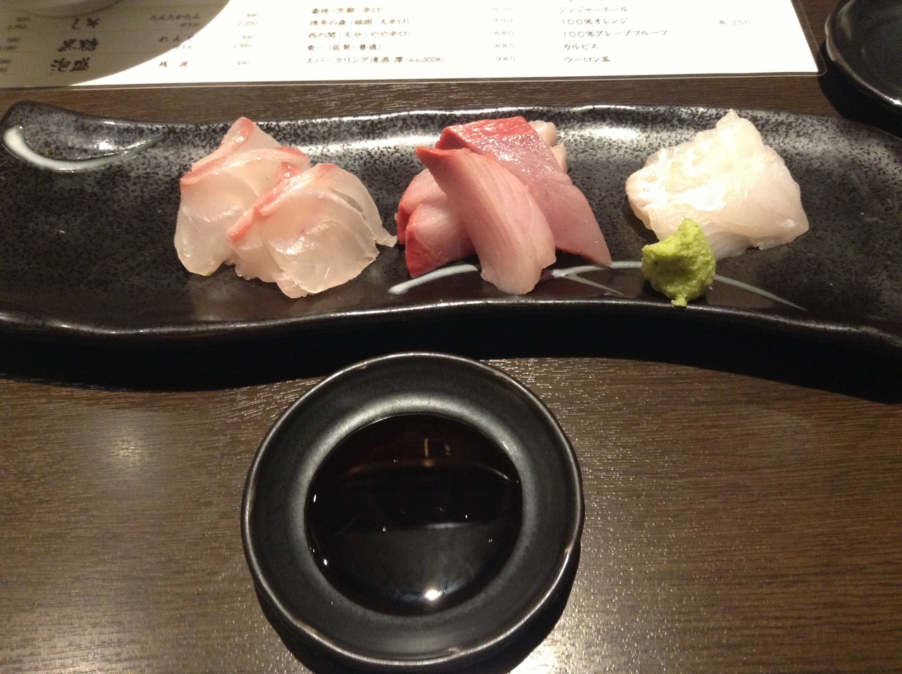 刺身盛りは、鯛、寒ぶり、ひらめでした。長浜直送とあるようにレベルの高い刺身でした。旬のもので本当に美味しい。
