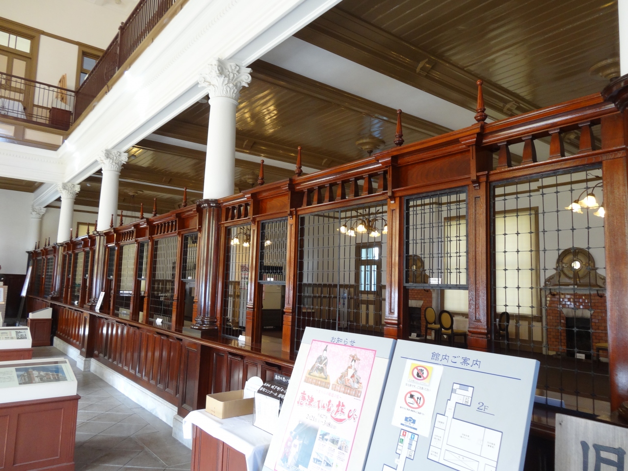 屋根にあるドームや塔などはどことなく東京駅に似ている赤レンガと白い外壁のコントラストが美しい建築物でした。1階にある銀行窓口は当時を感じさせるレトロで重厚感があり、とても印象的でした。奥には分厚い扉が付いた大きな金庫があり、中にも入ることができました。施設の観覧は無料です。