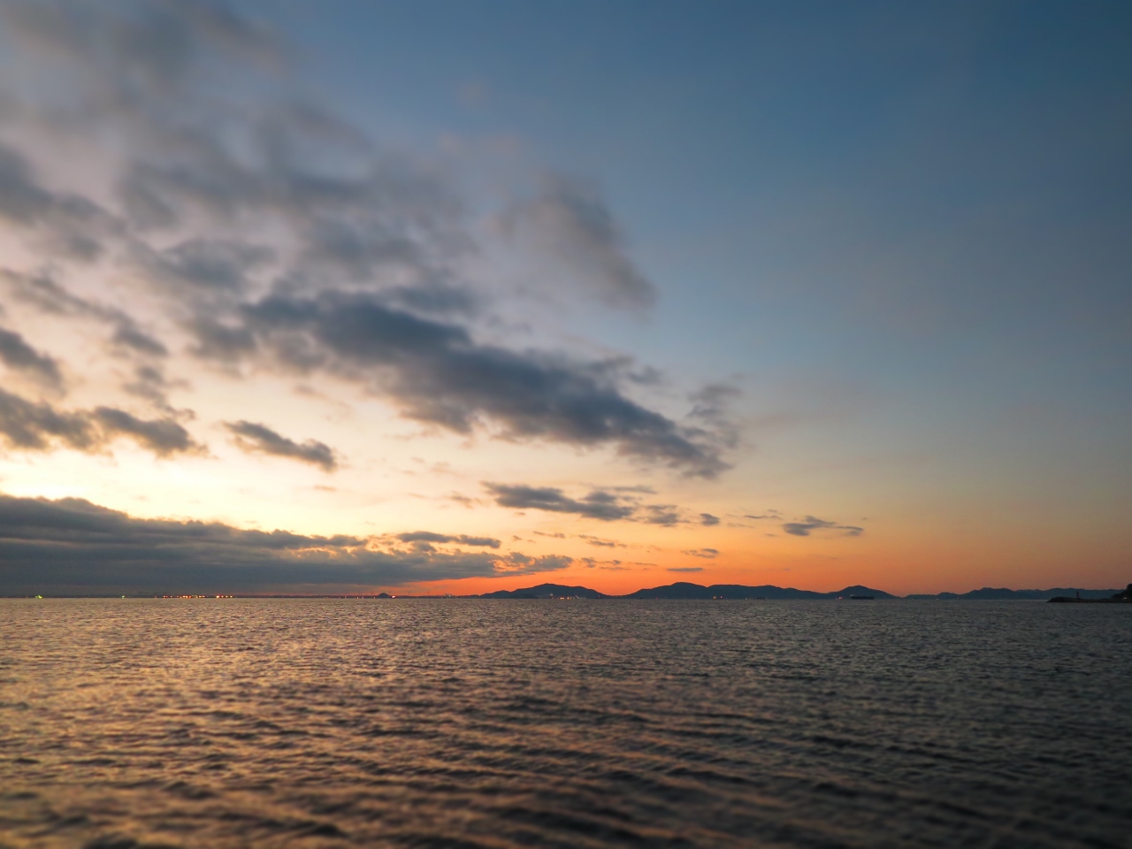 海岸沿いの石積みの突堤先端から、夜明けの景色を見てきました。ぐるっと三河湾に囲まれ、その真ん中に三河大島が鎮座。冬ですので、街灯りに負けないような星空が瞬き、日の出が近づくと赤みを帯びた景色が広がってきました。日の出方向に雲が多かったのですが、いい感じの景色に出会えましたよ。PS:突堤から戻る途中、満潮で道が膝下まで水没。潮の満ち引きには、気を付けてください。