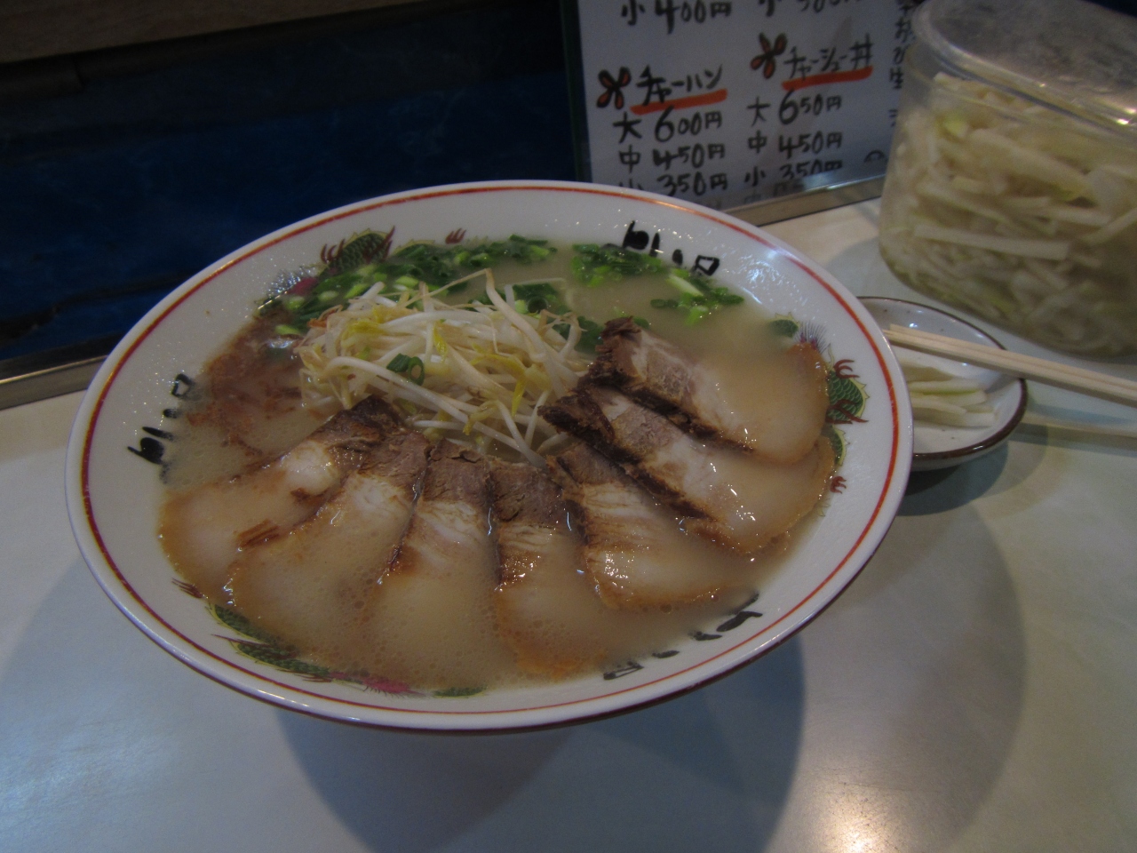 地元の人にオススメしてもらったので行ってみました。天文館からほど近いところにあります。豚骨スープながら思ったよりあっさりとしており、美味しいです。チャーシューも肉厚で絶妙でした。鹿児島ラーメンらしく漬け物がテーブルに置いてあり、自由に食べれます。お店の人の感じもよく、また鹿児島に行く機会があれば寄りたいお店です。