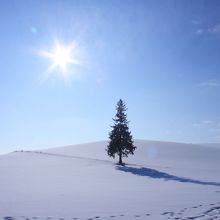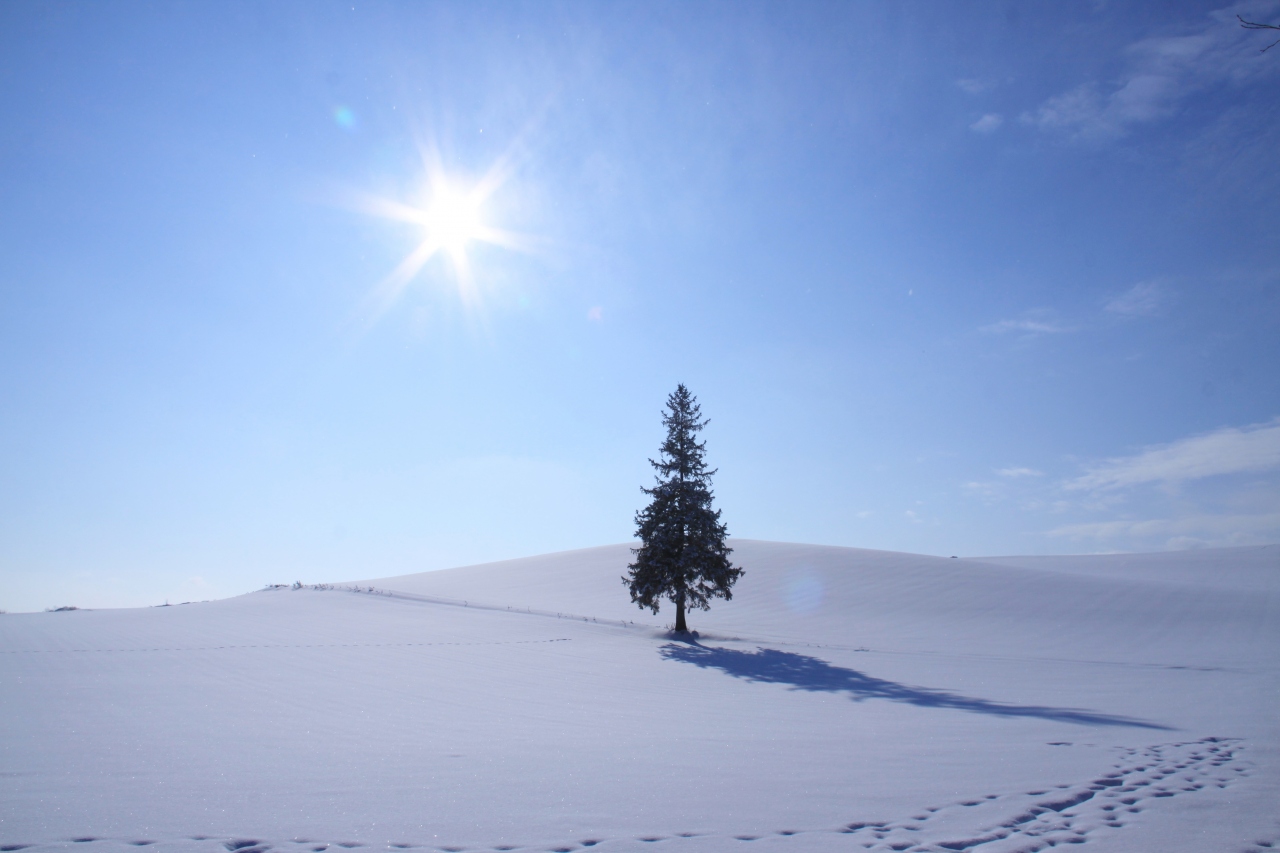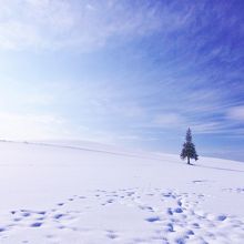 美瑛のガイドブックやカレンダーにもよく使われるフォトジェニックな木です。夏、緑のの畑の中に立つ姿も良いですが、やはり雪が似合うと思います。夜明け前、日中、雪降る中、青空の下など条件ごとに表情の異なる風景が楽しめ、写真好きにはたまらないスポットです。新栄の丘展望公園から近く、カーナビにも登録があります。