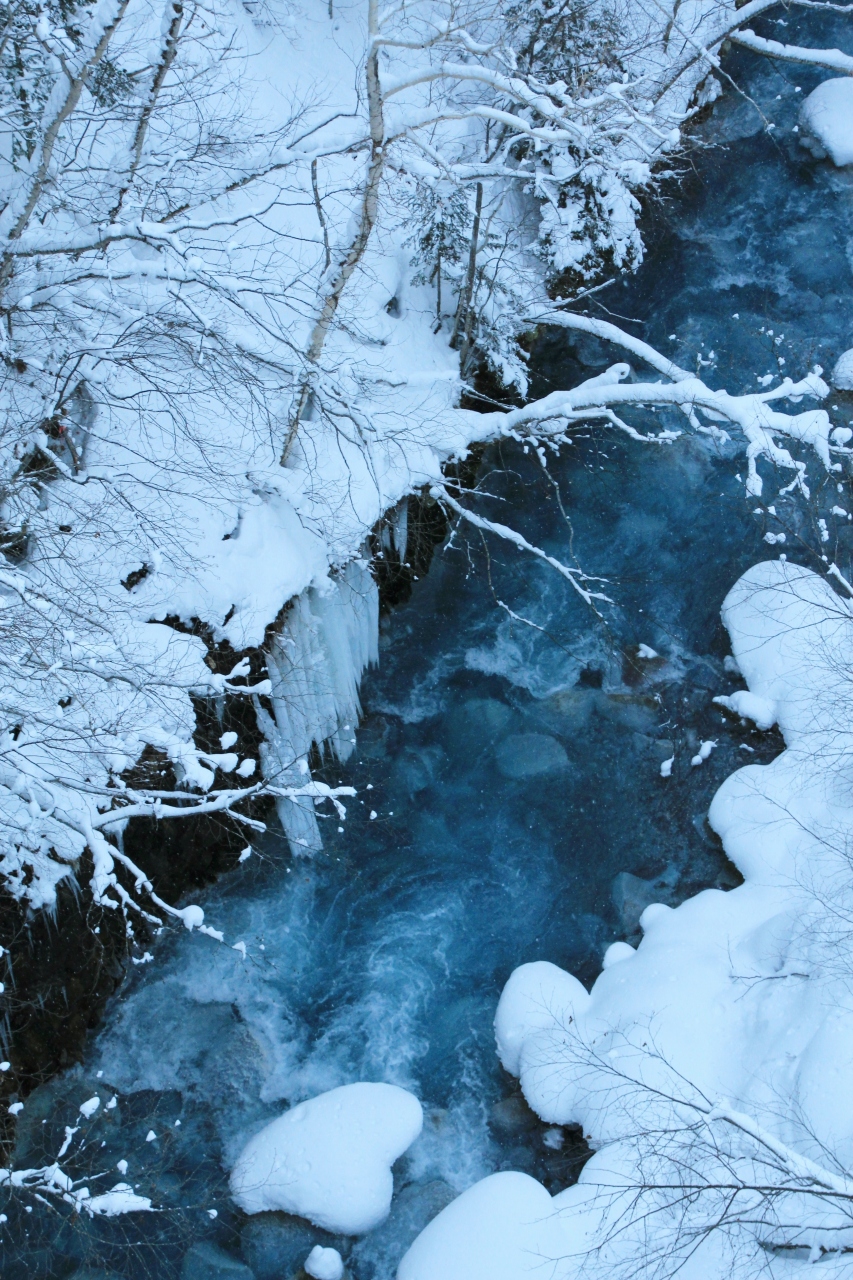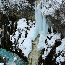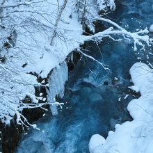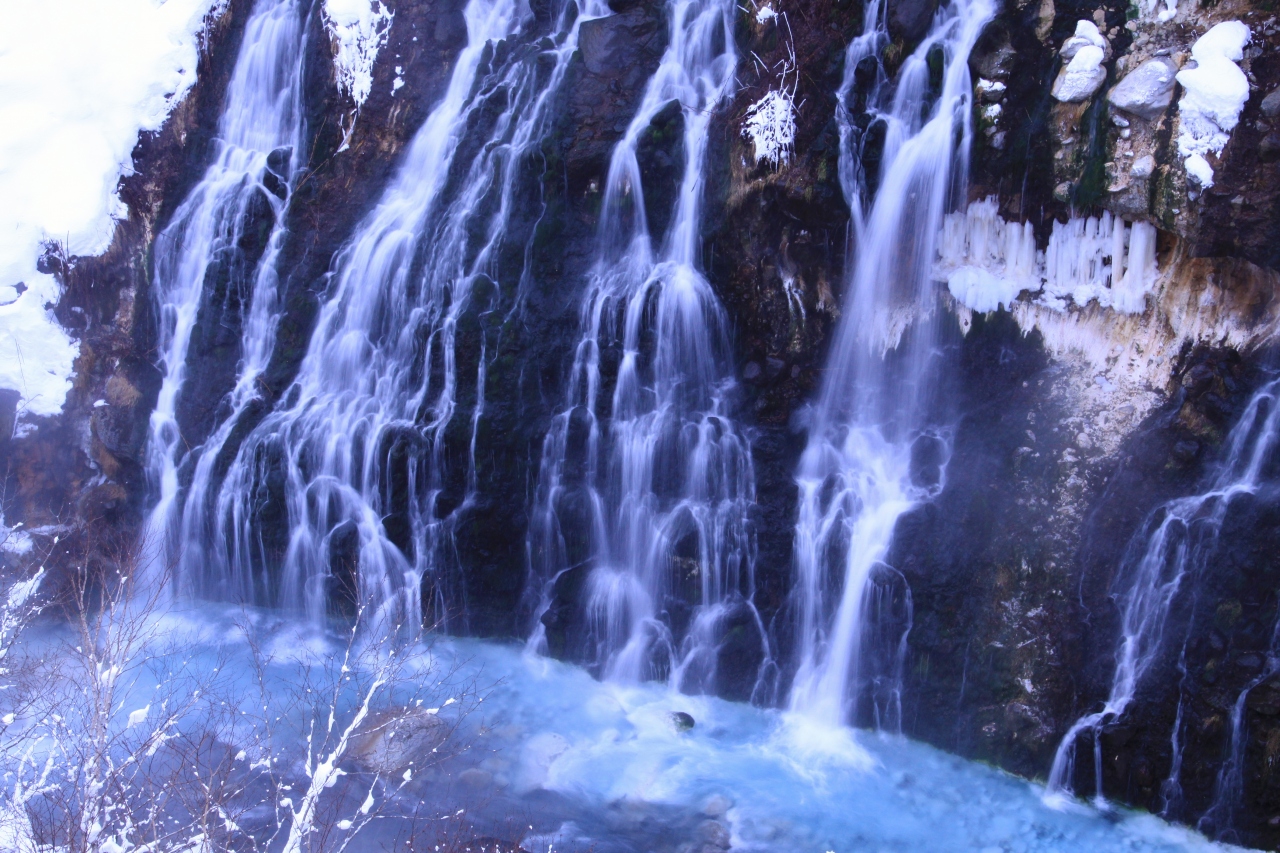 年末年始に行ったので観光客は数えるほど。ほぼ貸し切り状態で滝と雪景色を堪能しました。美瑛川、そして青い池へと流れる滝の水はやはり青。滝が凍ってできた氷柱も薄いブルーが美しく、白い木々とのコントラストも見事でした。滝は橋から見るのですが、橋は除雪されていないのでフカフカの新雪を歩くのも気持ち良かったです。近くの「青い池」も今シーズンから冬季見学が可能になり、16時からはライトアップもされるので、併せて行かれると良いと思います。