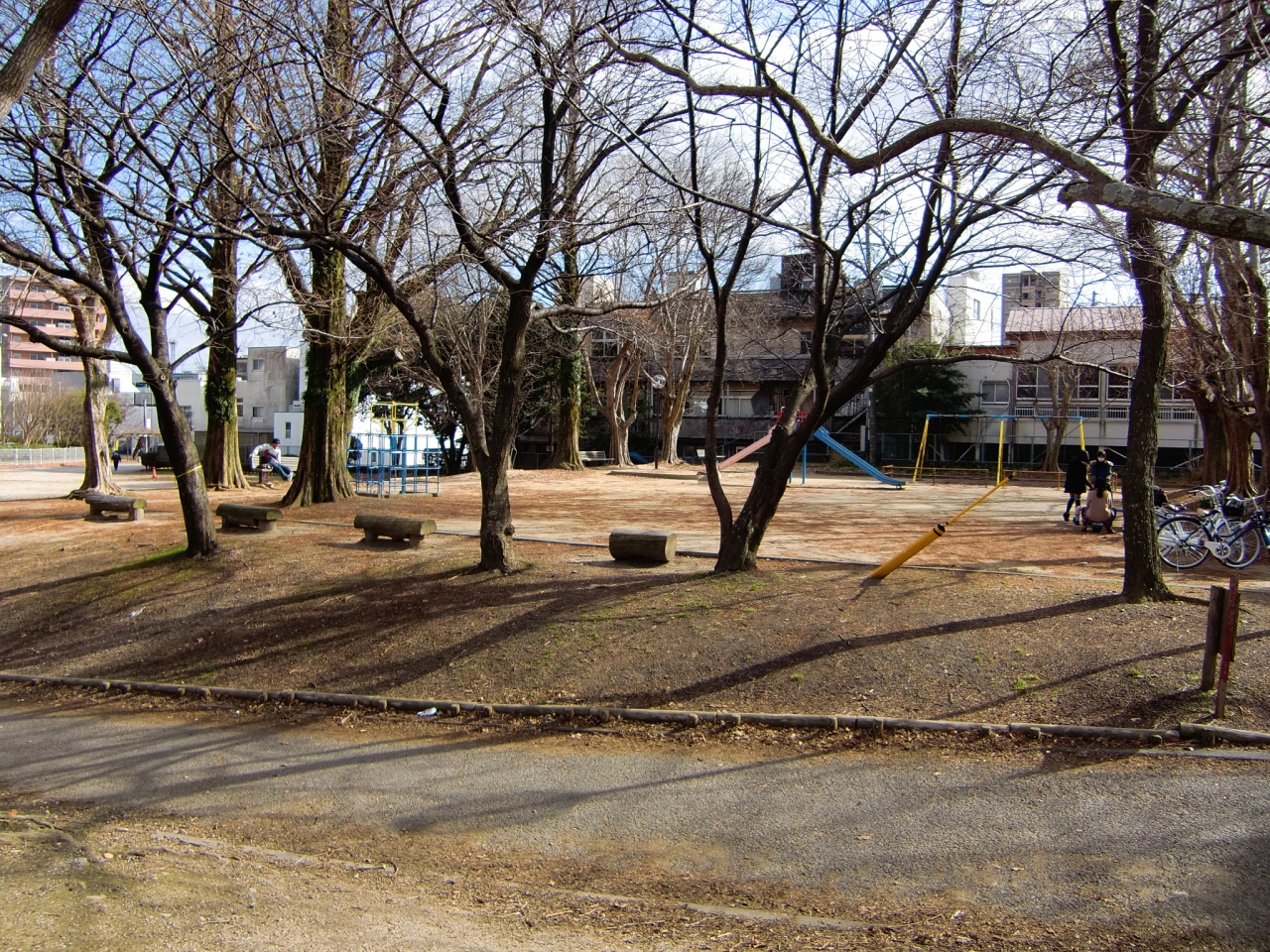池を囲むように遊歩道があり、子供が遊べる遊戯施設もありました。