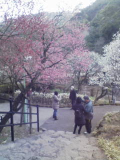バスツアーで、三島のフルーツパークで食事をしてから、熱海に向かいました。箱根から細く急な下り坂はスリリングです。バスもブレーキが焼けてしまったことがあったとか。途中の避難所が何とも面白い。駐車場は乗用車だけなので、梅園前の道路で乗り降り、梅まつり期間中は有料ですが、その分、中の澤田政廣記念美術館は無料で入れます。細長い斜面を登って降りて約30分、素敵な散策でした。足湯もあり粋です。韓国庭園、中山晋平記念館もよかったです。園内には、福寿草、園内に一本と前の道路には熱海桜が満開でした。