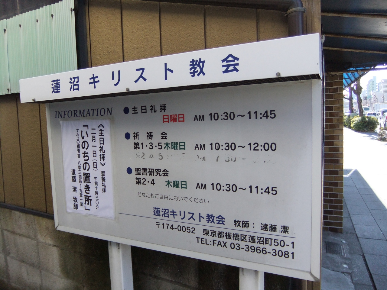 都営三田線の本蓮沼駅から中山道を志村坂上方面に3分ほど歩いた場所にある小さな教会です。信者さんが静かにお祈りを挙げる、伝道所のような小さな建物なので外からはちょっと分かり難いです。日本長老会のきちんとしたキリスト教の教会です。