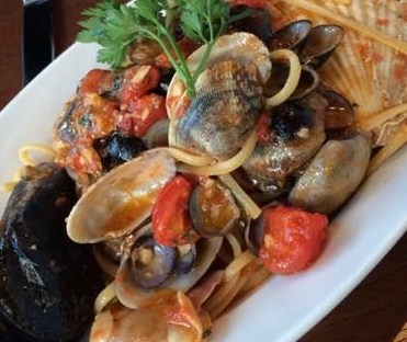 ゆっくりおしゃべりしながら食事を楽しむことはできませんが(築地のお店はそうですよね^^)、評判の魚介たっぷりのスパゲティを食べてみたかったので行ってみました。予約もできますが、一週間前では無理でした。お店は11時オープンで、10時半にスタッフの方が名前を書くボードを持って出てきてくれます。そこに名前を書いてもらい、11時5分前に来るように(グループなら全員揃って)言われました。30分くらいですから、場外をぷらぷら。中は意外に奥行きがあり、築地とは思えない雰囲気です。魚介たっぷりのスパゲティの前に、ランチのサラダ(美味しいです!!)をいただき、せっかくなのでデザートとエスプレッソも味わってきました。美味しかったです。ただ、もうちょっとゆっくりできればと思いますが・・・無理でしょうね^^