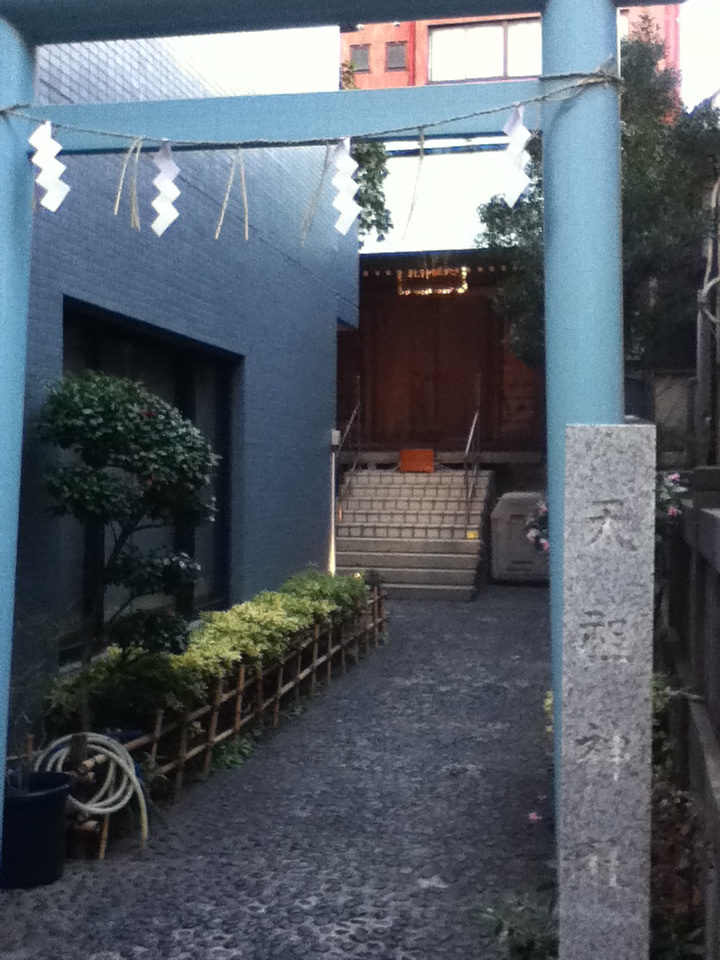 地下鉄宝町駅の東、首都高速の東側の住宅地にある。細い路地を入っていくと、両側を建物に囲まれた狭い処に少し引っ込んで少し水色の鳥居が立っている。その先に拝殿がある。境内は大変狭く、短い参道や拝殿の横に少し木々が立っている程度である。週末午後だったが、前の歩道は人が歩いておらず、静かであった。寛永元年日本橋通3丁目に創建、その後現在の地に移転され、長い間多くの人々から敬拝されており、訪問することをお勧めする。