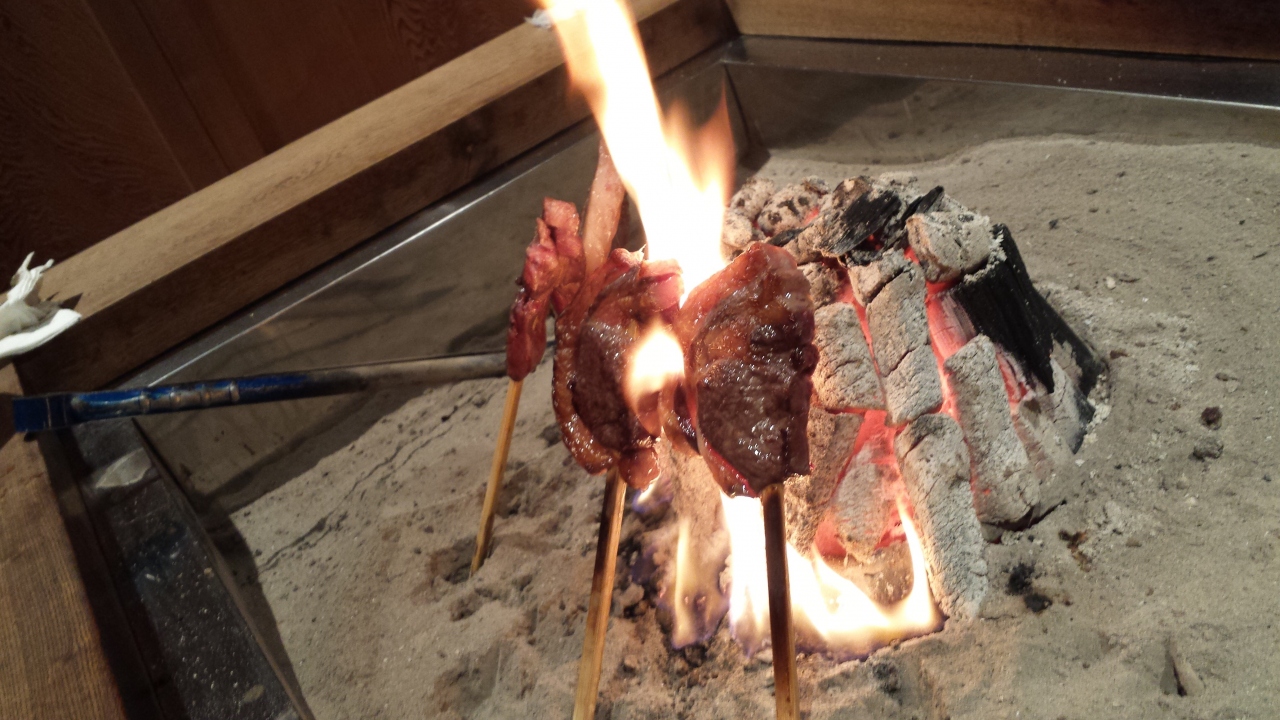 囲炉裏で焼いて遠赤外線効果?でとてもジューシーでおいしかったです!