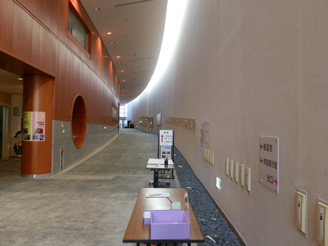 1.埼玉県平和資料館に入ると、県立松山女子高校書道部による「平和」と「創造」の文字、世界がテーマの縦8.5m 横18mの大壁画が迎える。2.愛称として、埼玉ピースミュージアムの名が贈られたこと。3.入館料が100円から無料になった。そして、運営が県から民間に委託された。