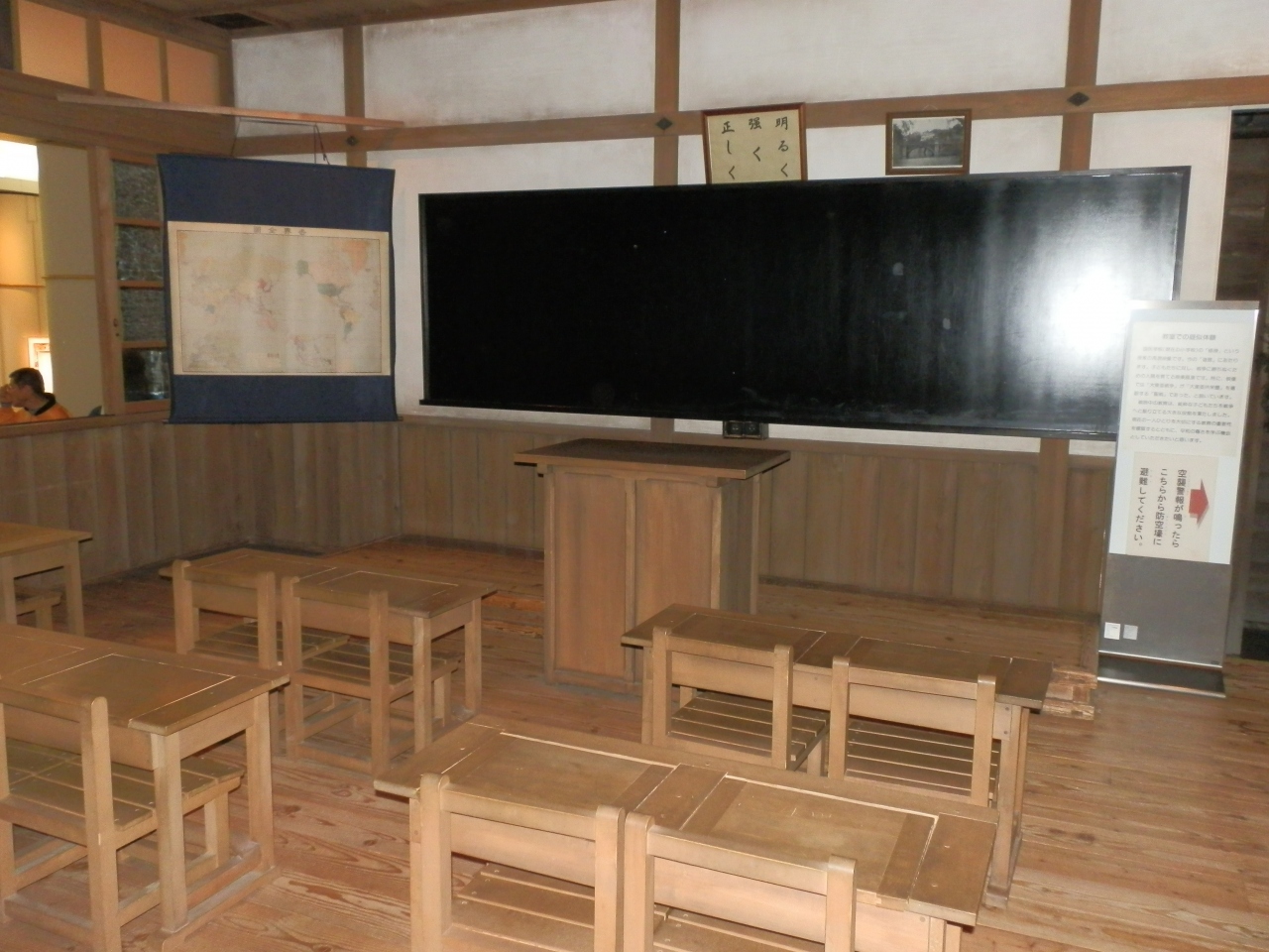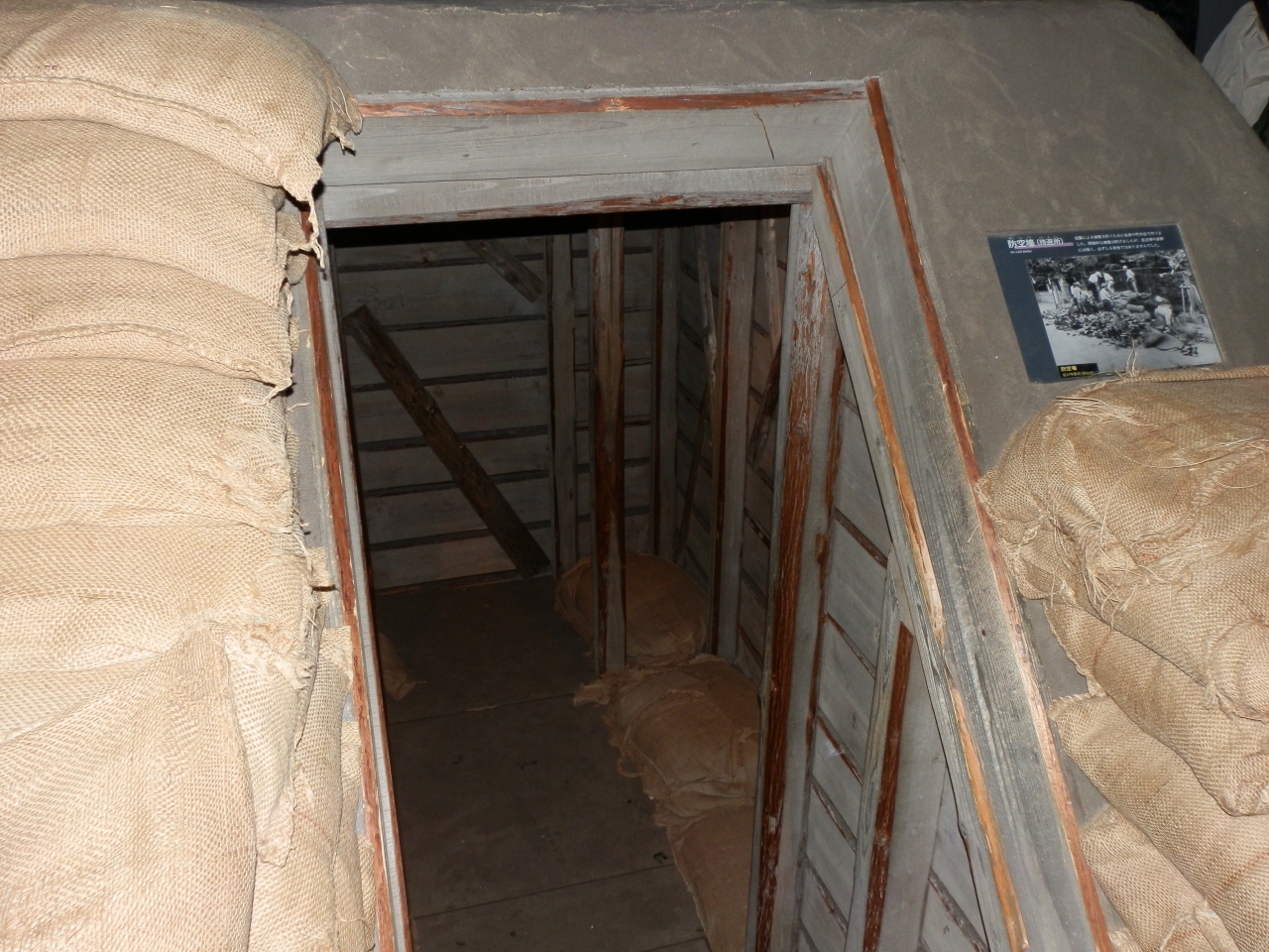 タイムトンネルを潜ると昭和の初期から終戦までの資料が時系列・テーマ別に展示されています。住居やその食卓・学校・防空壕などが再現されている。また、戦争時の遺品などもあり、戦争の惨さを語り掛けているようだ。