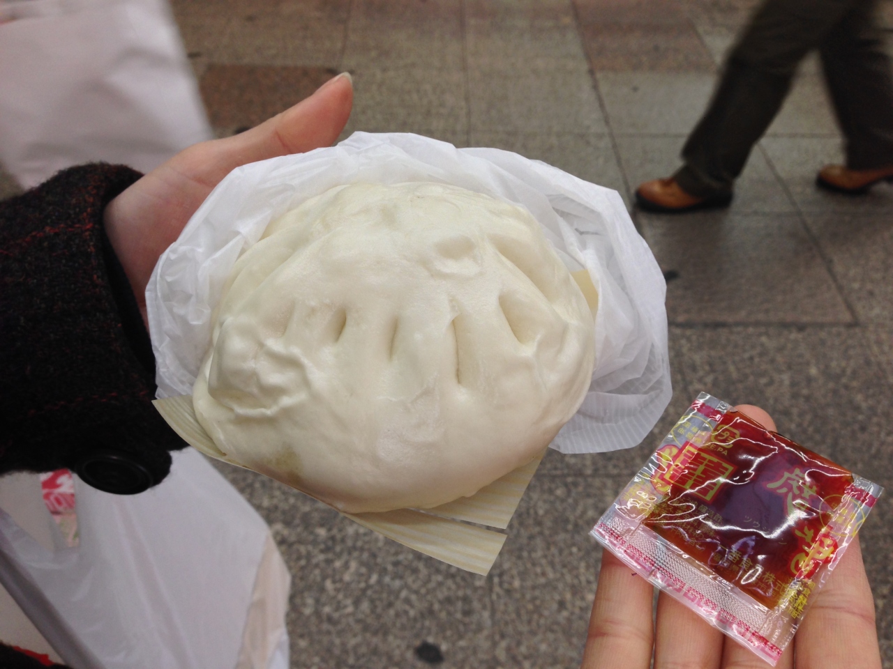 当たり前のようにかけている酢醤油も、昔は無料で付いてきていましたが、今では別売り5円となっていました。これにはびっくりしました。肉汁たっぷりの肉まんは冬にはうれしいおやつです。