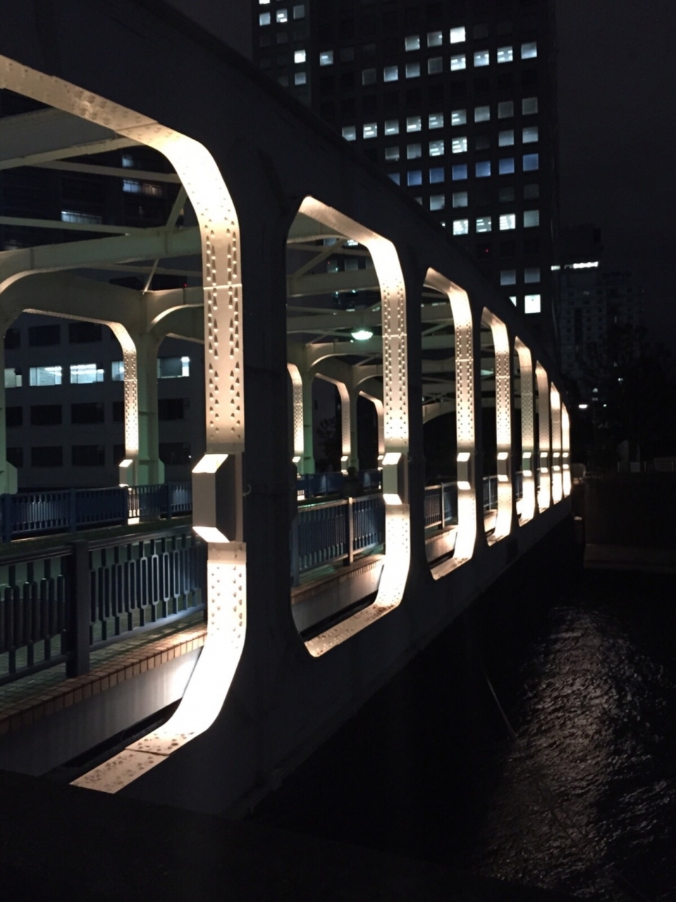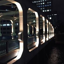シンプルなデザインですが、夜はライトアップされ、人通りもあまりないので、いぶし銀の魅力と言った感じの橋で、中々の景観です。