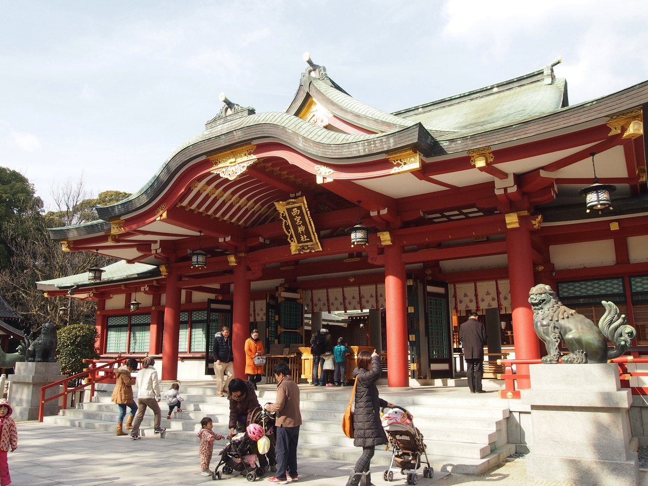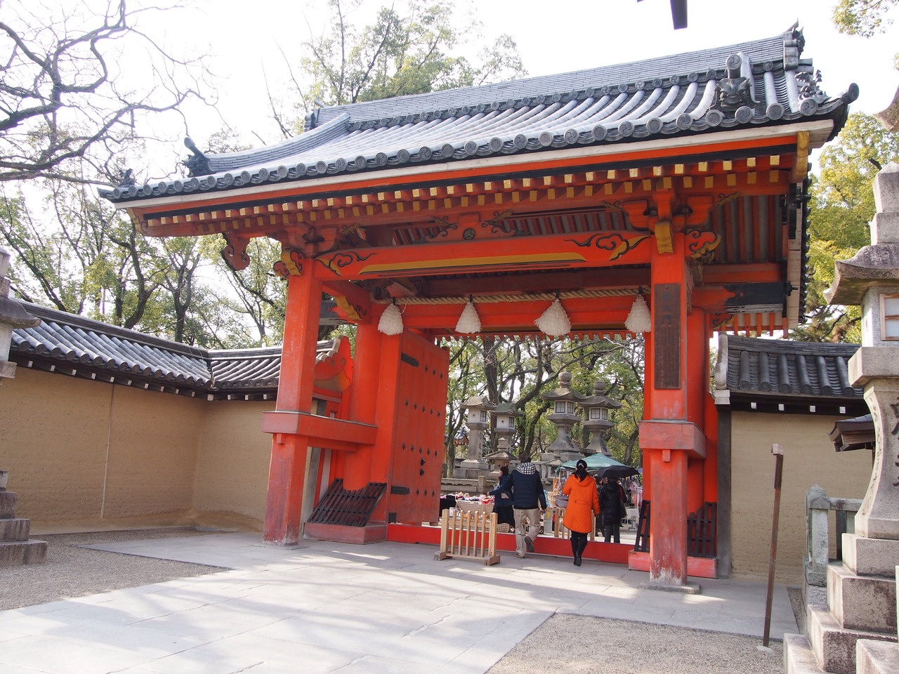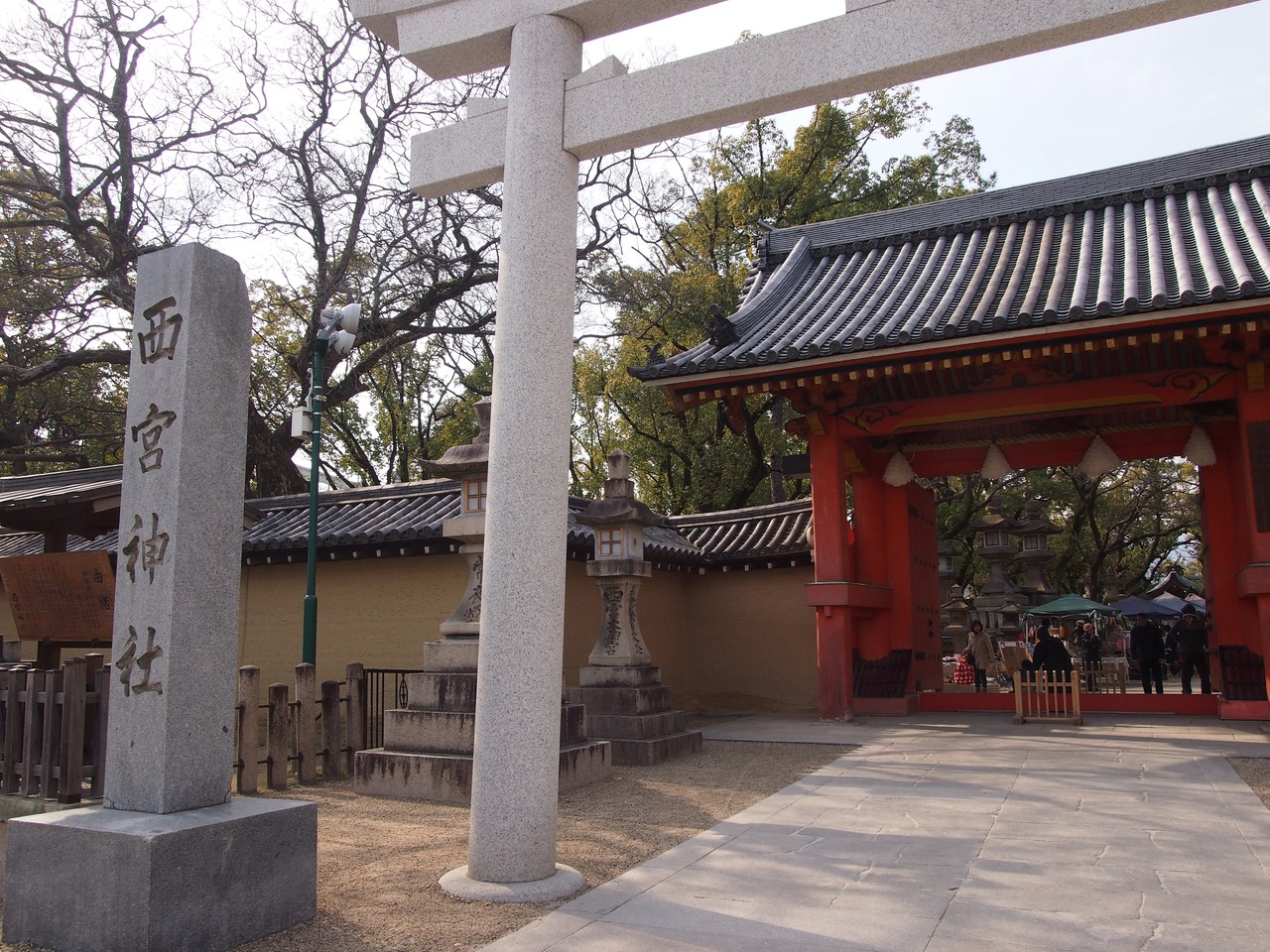 福男で有名な西宮神社で、真っ赤な門を見ると