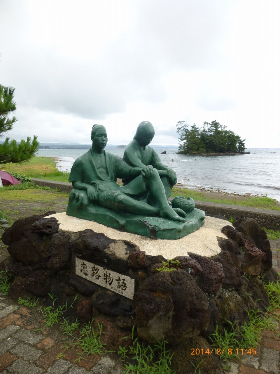 地名に由来する悲恋伝説が伝えられており、浜辺の一隅には、