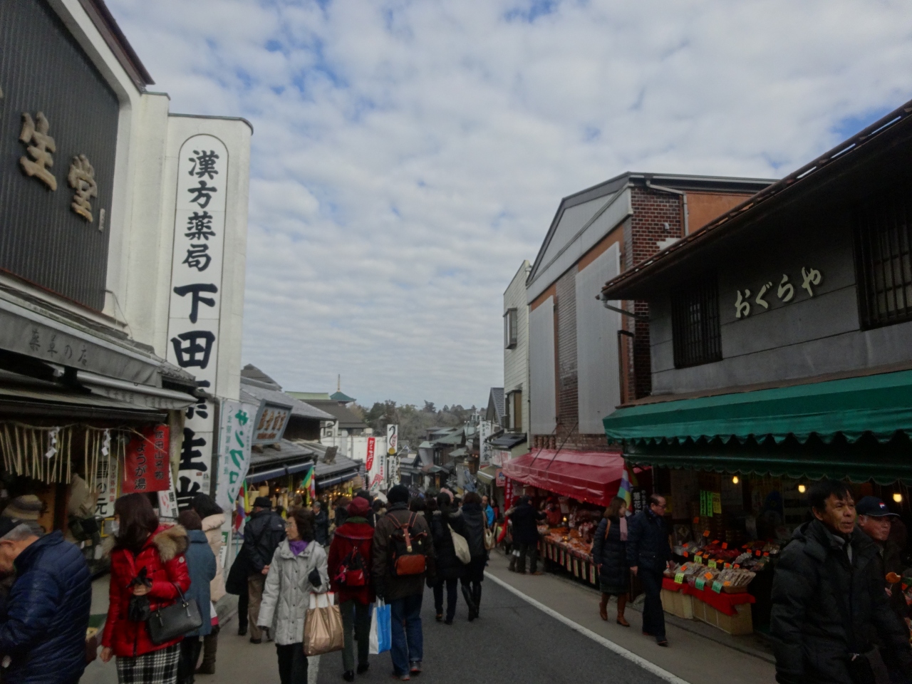 沿道にはたくさんの食べ物屋さんやお土産屋さんがあって、境内にたどり着くまでについつい買い食いなどしてしまう。
