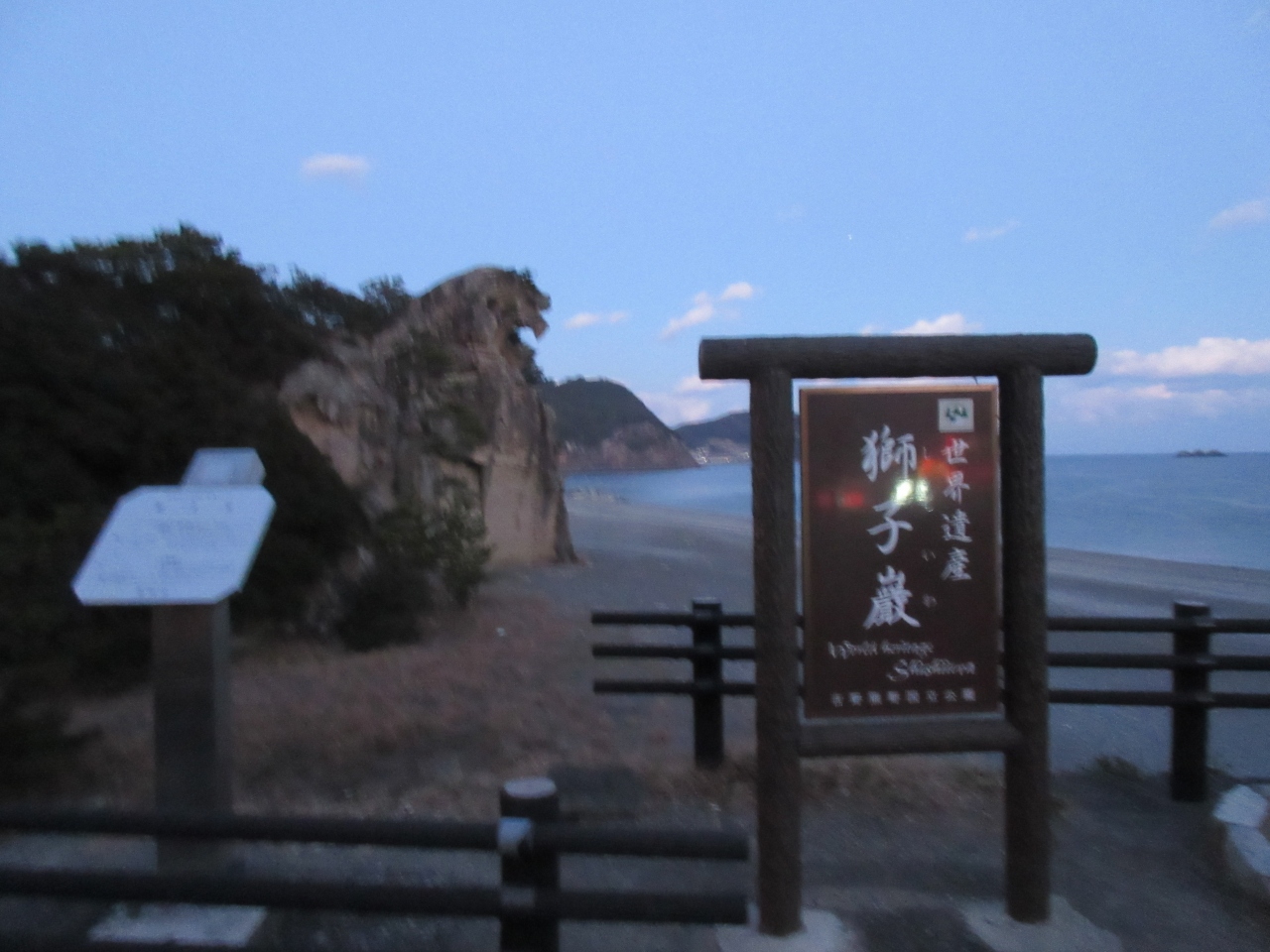 暗くなったので、獅子岩の前のすき屋で夕食を食べて