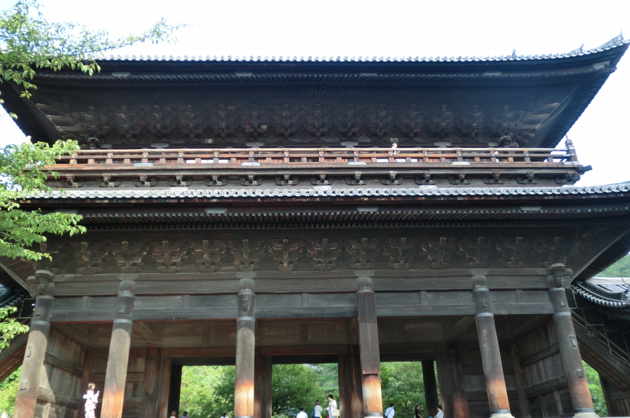 その三門に上がると、緑豊かな山々を背景にした南禅寺の多くの建物を見ることができます。