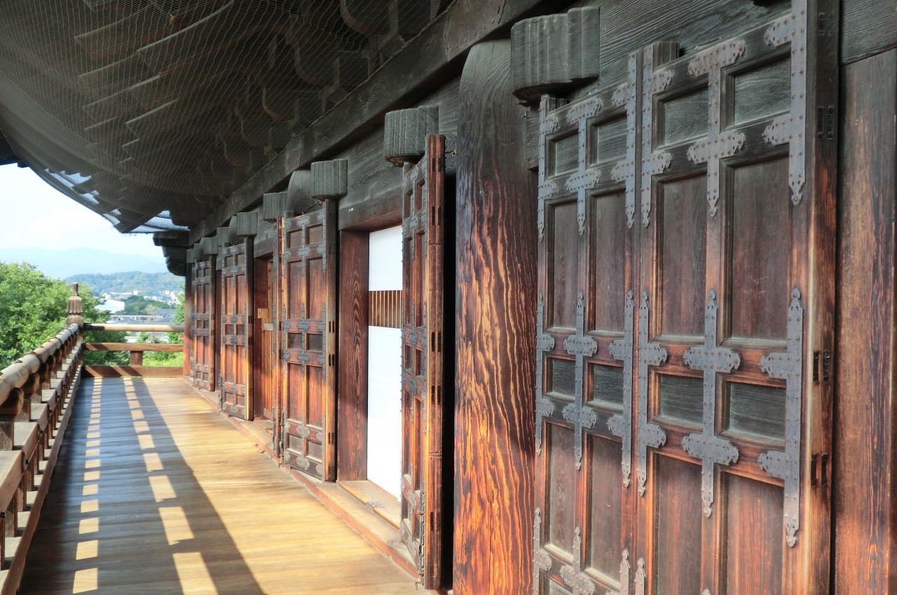 歌舞伎の中の石川五右衛門が「絶景かな絶景かな・・」と吐いた科白で有名な三門は応仁の乱で焼失した後、1628年、藤堂高虎によって建造されたものです。