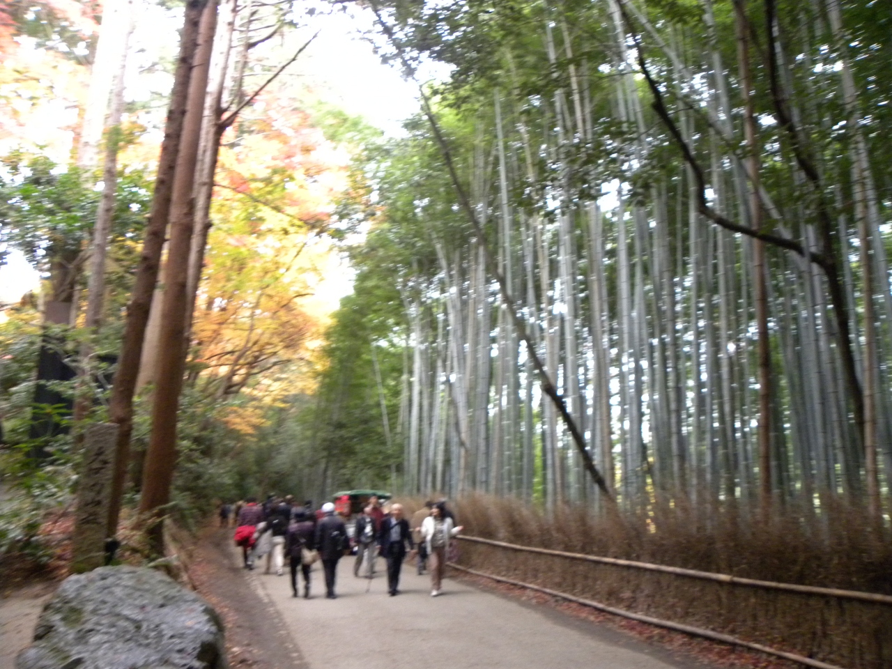 嵯峨野の野々宮神社から嵐山にかけて竹林の道が続いています。紅葉シーズンは野々宮神社→嵐山の流れでないと歩けないぐらい込み合っていました。中国の人に人気があるようで、中国語がたくさん聞こえてきました。