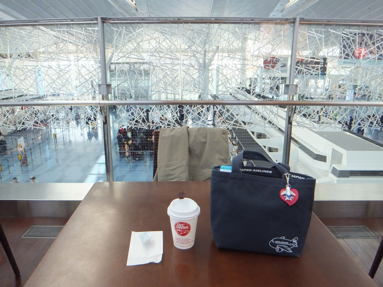 国際線ターミナルを見渡すことができるカフェ。広々とした大空間と明るい日射しで気持ちの良いひとときを過ごすことができます。お店のスタッフさんはこまめにテーブルを拭いていましたし、好感を持てました。