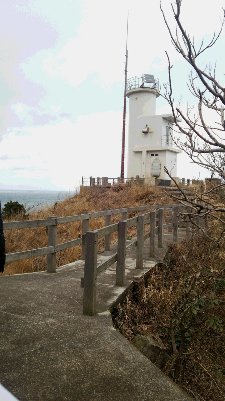 駅からパンフレットのとおり歩くと灯台の麓まで30分。ここまでは車でもいける。しかし、問題はここから。看板では0.5キロ。ひたすら海岸沿いの昇り階段をいくと、15分ほどで灯台にたどり着けた。