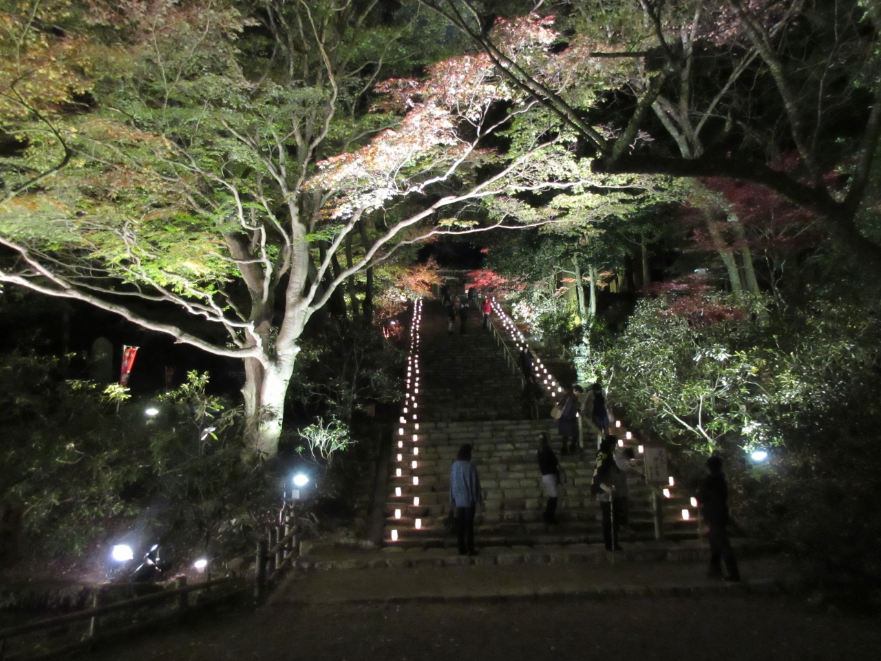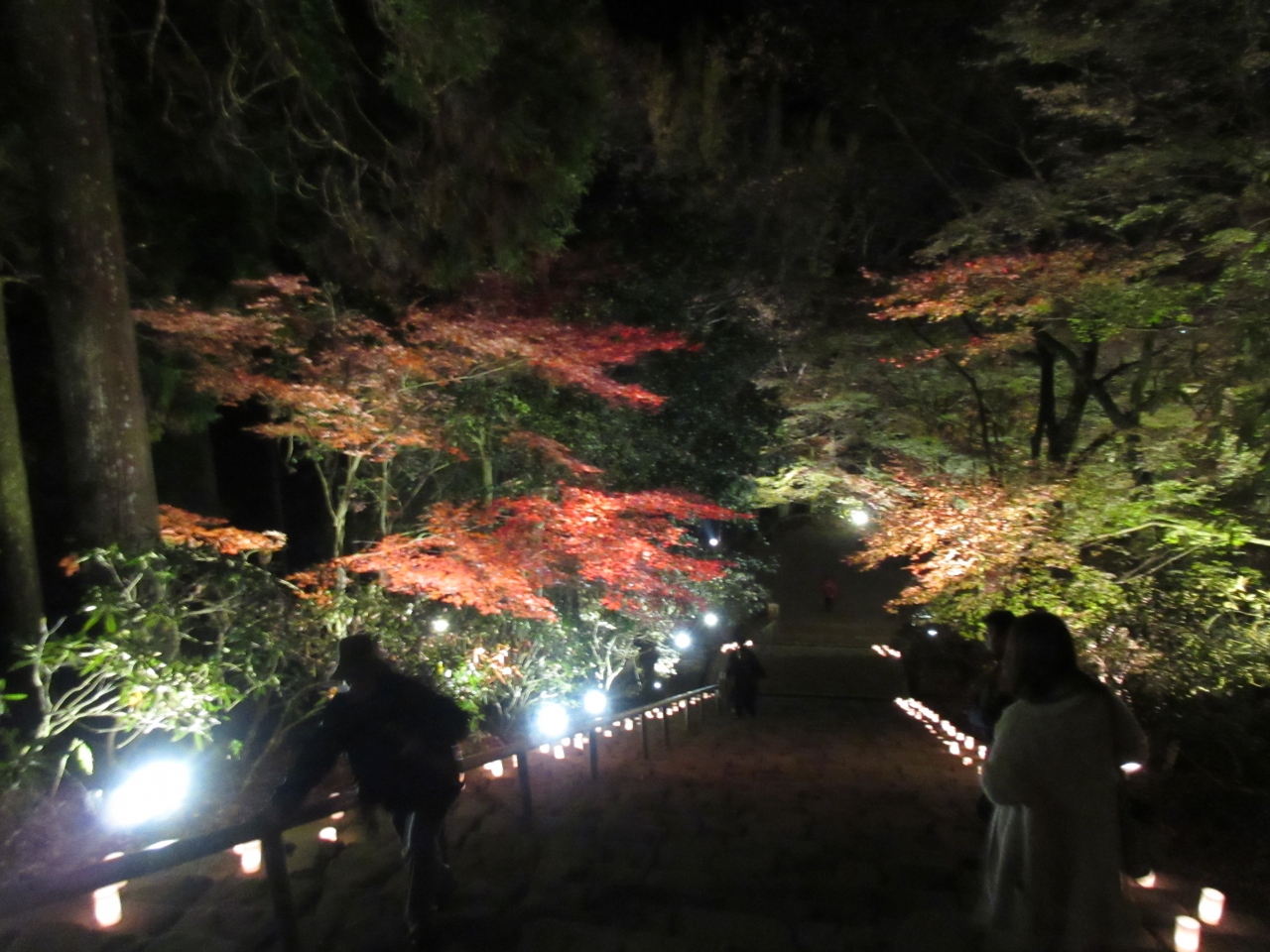 足元は灯篭で、もみじとかもライトアップです