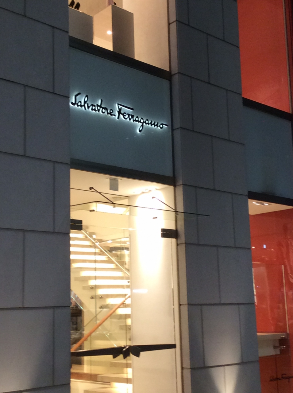 中央通り沿いの銀座七丁目にあります。イタリアを代表するトータルファッションブランドですが、もともとは靴のデザインからスタートしたブランドです。1978年に発売された「ヴァラ」はアイコンのリボンで有名な代表作で、いまだ人気です。