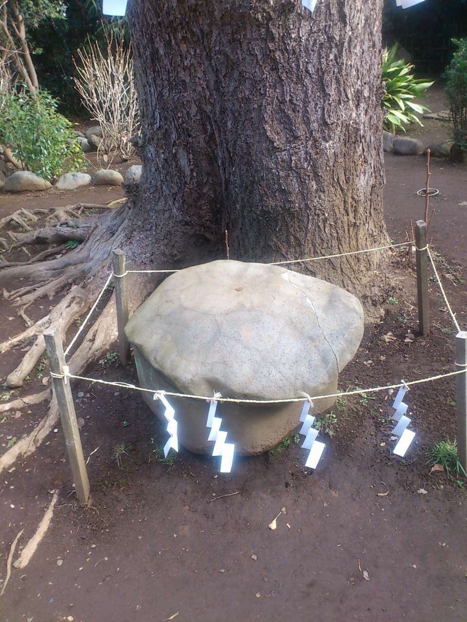 江ノ島の3つのお宮の内の一番奥の奥津宮の境内にあります。亀の亀甲の同じ模様が浮き出た石です。鎌倉四名石の内のひとつだそうで、パワースポットとしてテレビでも紹介されています。しめ縄で囲われていたのでわかりましたが、石自体はそんなに大きなものではありません。