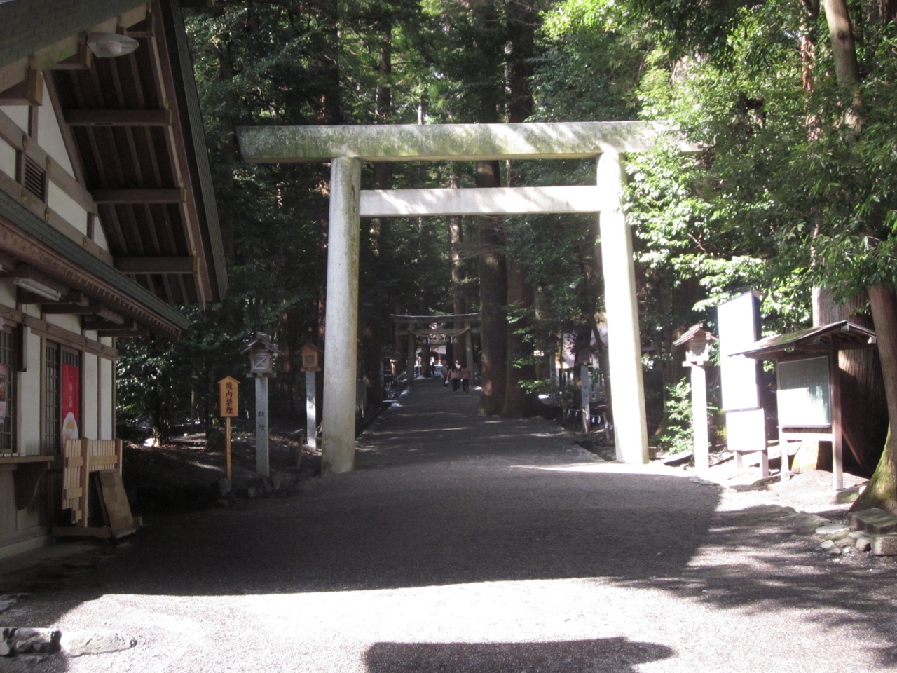鈴鹿の山々の裾野にある大きな神社です。正面の鳥居から眺めると長い参道が続き、荘厳な雰囲気がします。