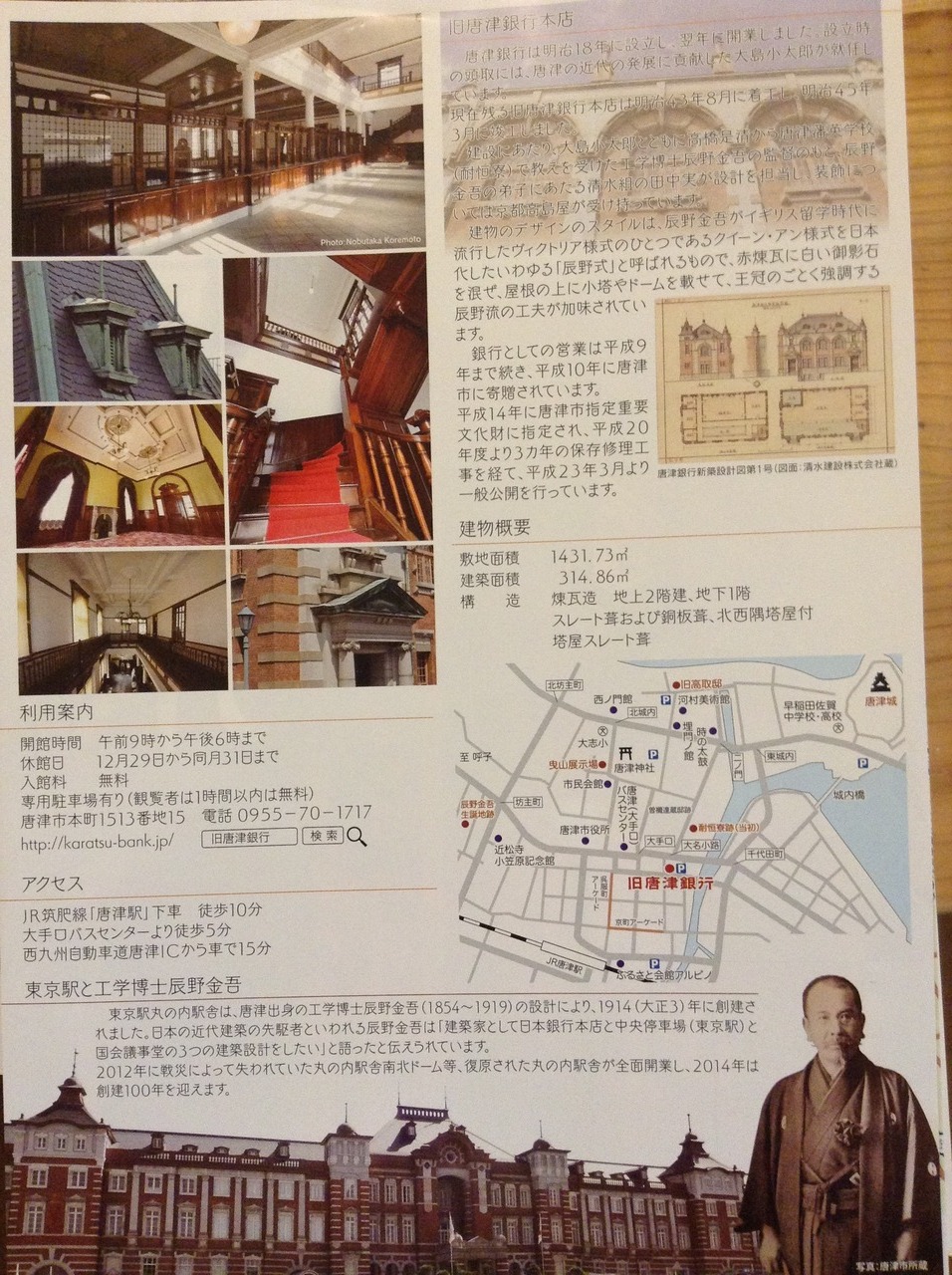 唐津出身の辰野金吾のお弟子さんが設計し、辰野式といわれる呼ばれるスタイルとのことです。