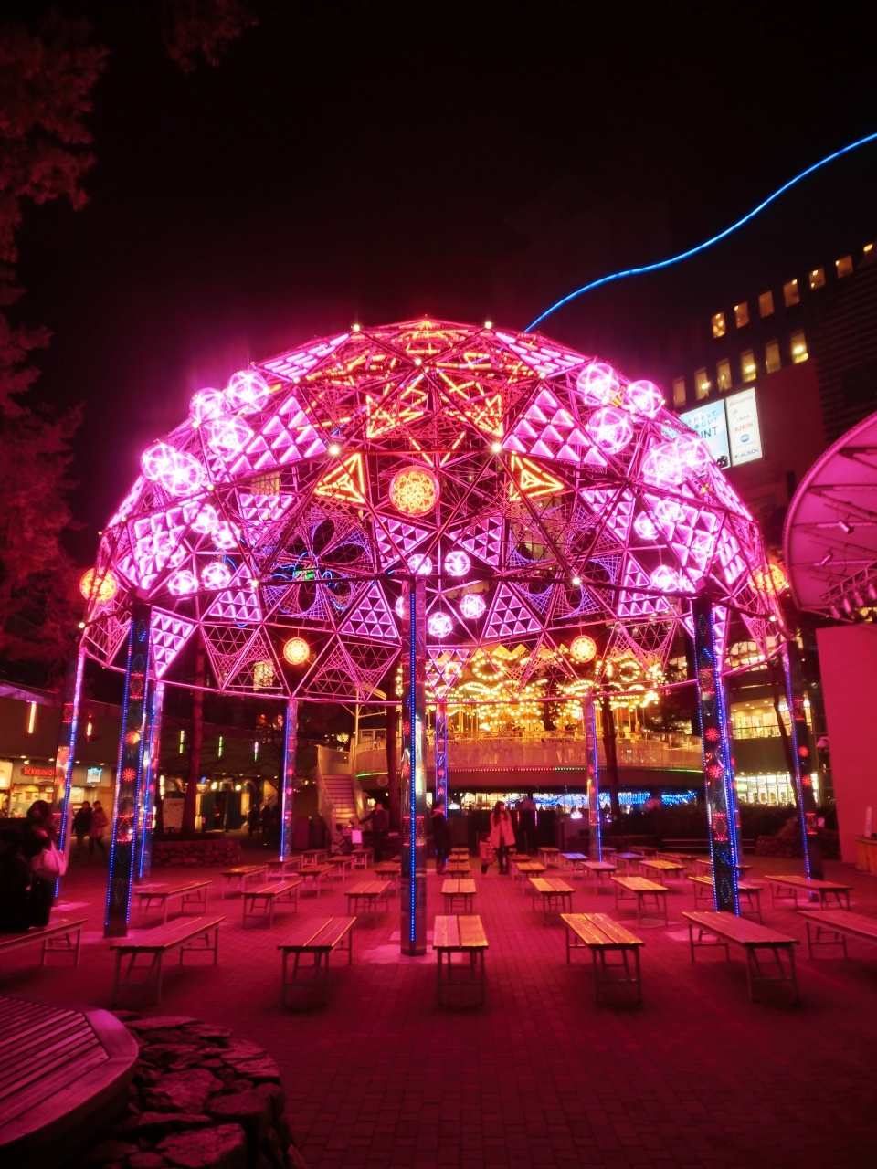 ドームシティはアトラクションエリアも含め、入場無料です。つまり、イルミネーションもご自由にご覧ください状態なのですが、それにしてはラクーアエリア、アトラクションズエリア、ミーツポートエリアと広い範囲での展開で、イルミネーションの種類も多数です。