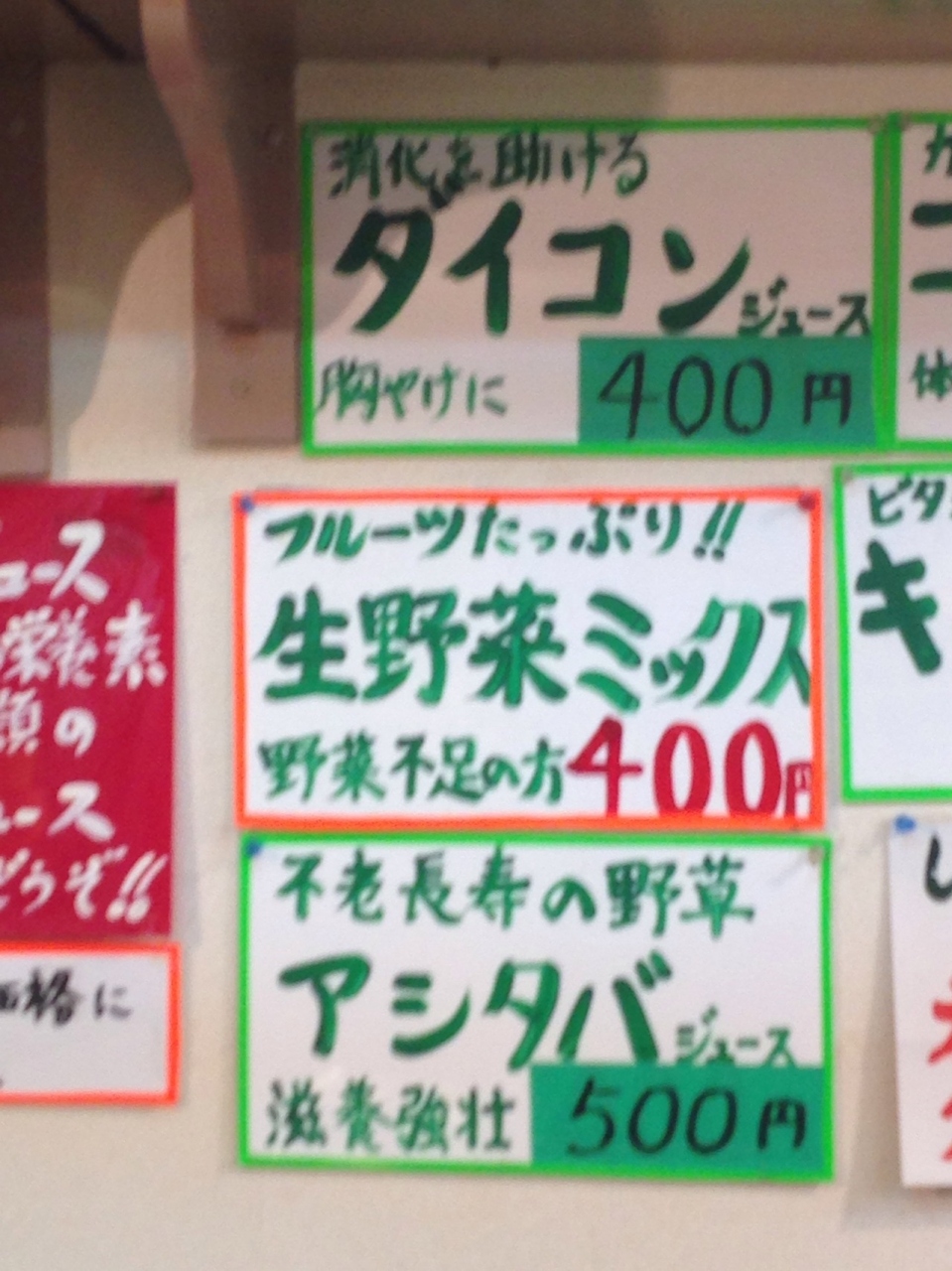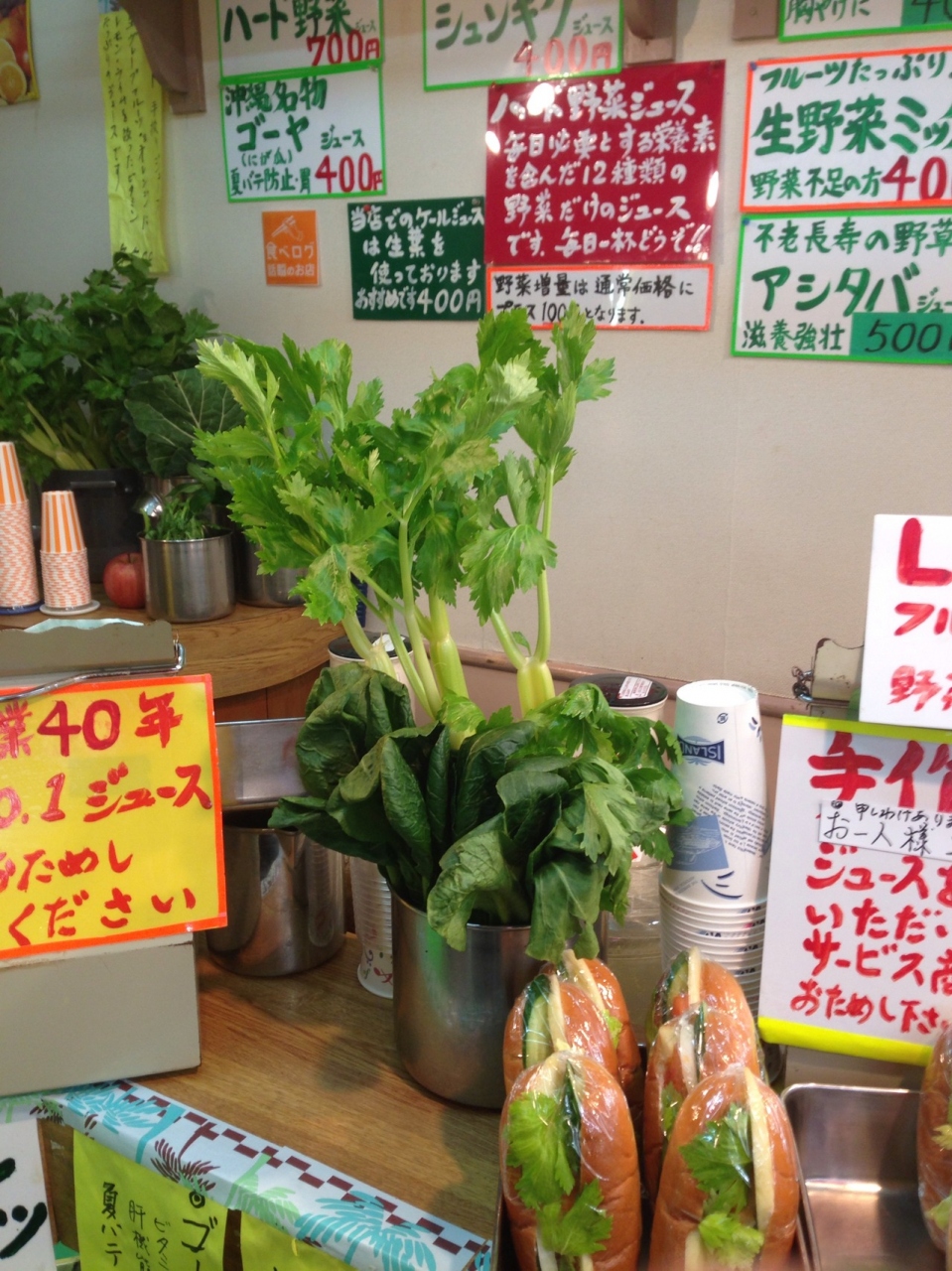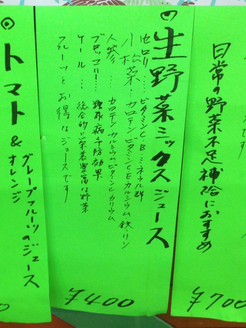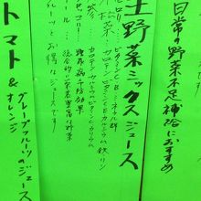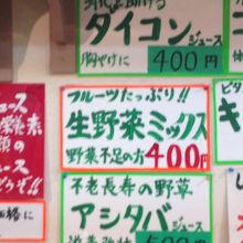 絞りたてのジュースを味わえるこの店のオススメは生野菜ジュースです。