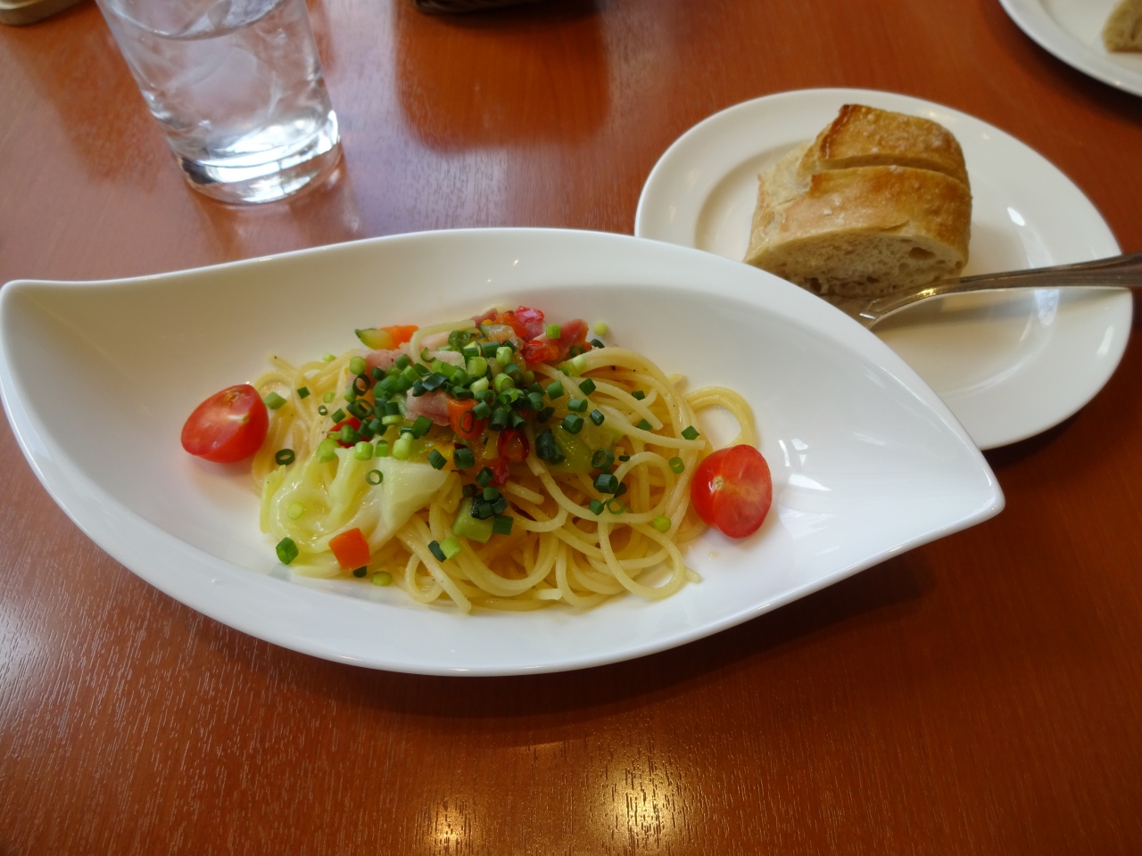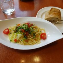 注文したのはったっぷりの野菜や生ハムなどが入ったプレートとスパゲティのセットランチ。飲み物とデザート付き。