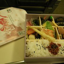 女性用なのでしょうね、少しご飯が少な目でおかずが少量ずつ色々入っていて彩が豊かでした。