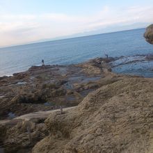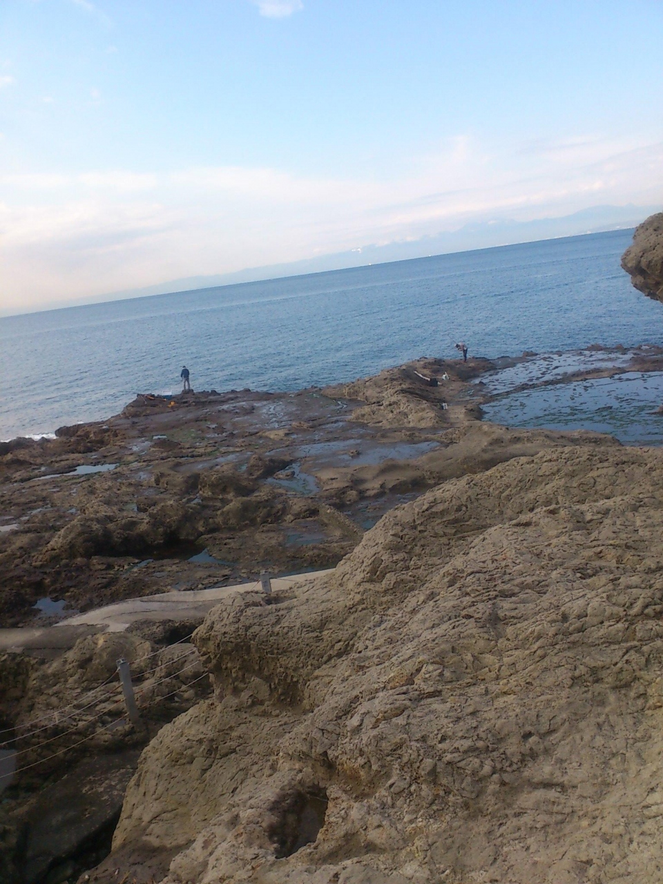 奥津宮から竜宮を参拝し、岩屋の方へ行くために急な階段を下って行くと、海岸に出ます。岩場で、磯遊びをしているこども達や、釣りをしている人たちが沢山います。晴れた日の夕方の夕日は絶景だそうです。ここから片瀬の方へのボートが出ているので、帰りに楽をするにはいいかもしれません。